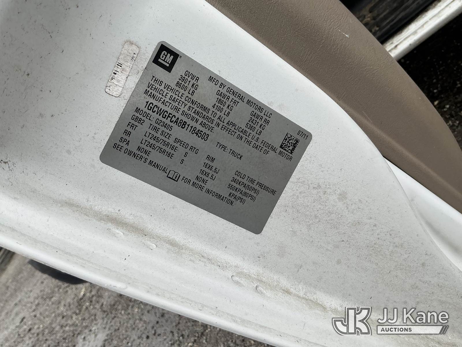 2011 Chevrolet G2500 Cargo Van, 8-cyl gas, Auto, A/C, (71,600 miles) (Runs & Moves, Rear Panel Damage) This is a Titled Item NOTE: This unit is being sold AS IS/WHERE IS via Timed Auction and is located in Plymouth Meeting, PA. Inspection & preview days for this unit are the 2 business days prior to the first day of items closing for this auction, item is located at 1402 Conshohocken Rd Plymouth Meeting, PA 19462 and hours of operations are 8a-4p. For pre-sale questions, please contact Bruce Thomas @ (267) 887-0392 or bruce.thomas.jr@jjkane.com. (Buyer is responsible for removal. Assistance by consignor or JJ Kane Auctions is not assured.)
