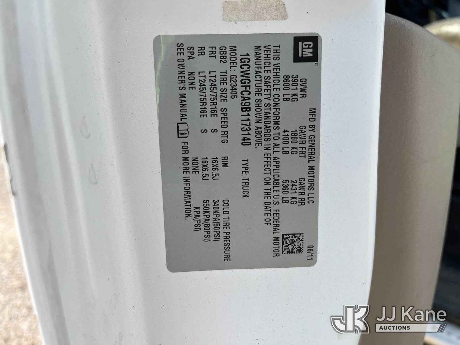2011 Chevrolet G2500 Cargo Van, 4.8L V8 Gas, Automatic, A/C, (93,010 miles) (Runs & Moves, Rusty Rocker Panels) This is a Titled Item NOTE: This unit is being sold AS IS/WHERE IS via Timed Auction and is located in Smock, PA. Inspection & preview days for this unit are the 2 business days prior to the first day of items closing for this auction, item is located at 1000 Franklin Dr Smock, PA 15480 and hours of operations are 7:00 am to 3:30 pm. For pre-sale questions, please contact Alaina White @ (724) 562-2575 or Alaina.White@JJKane.com. (Buyer is responsible for removal. Assistance by consignor or JJ Kane Auctions is not assured.)