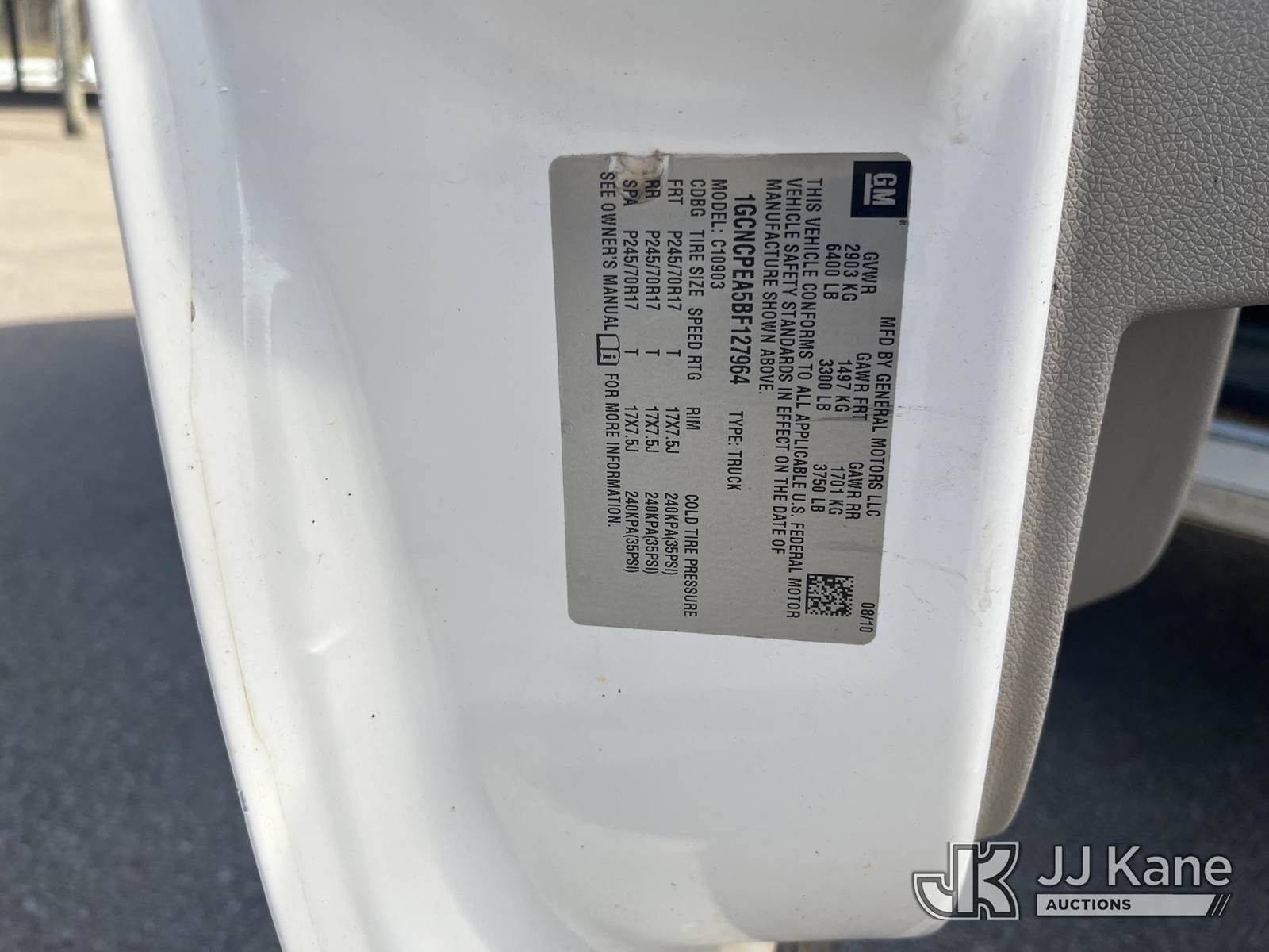 2011 Chevrolet Silverado 1500 Pickup Truck, s/n 1GCNCPEA5BF127964, 4.8L V6 OHV 16V Gas, RWD, Auto, A/C, with tool boxes & ladder rack, (185,983 miles) (Electric Cooperative Owned) (Runs & Moves) This is a Titled Item NOTE: This unit is being sold AS IS/WHERE IS via Timed Auction and is located in Somerville, TN. For more information & removal arrangements please contact Dalton Childers @ 629-395-3117. Removal by appointment only, Buyer/Hauler must present copy of paid invoice upon arrival. Purchaser acknowledges ALL lots must be removed within 7 business days of Auction, or a storage fee may be incurred. For Removal and Pick Up information, please reference the release form sent out after purchase. (Buyer is responsible for removal. Assistance by consignor or JJ Kane Auctions is not assured.)
