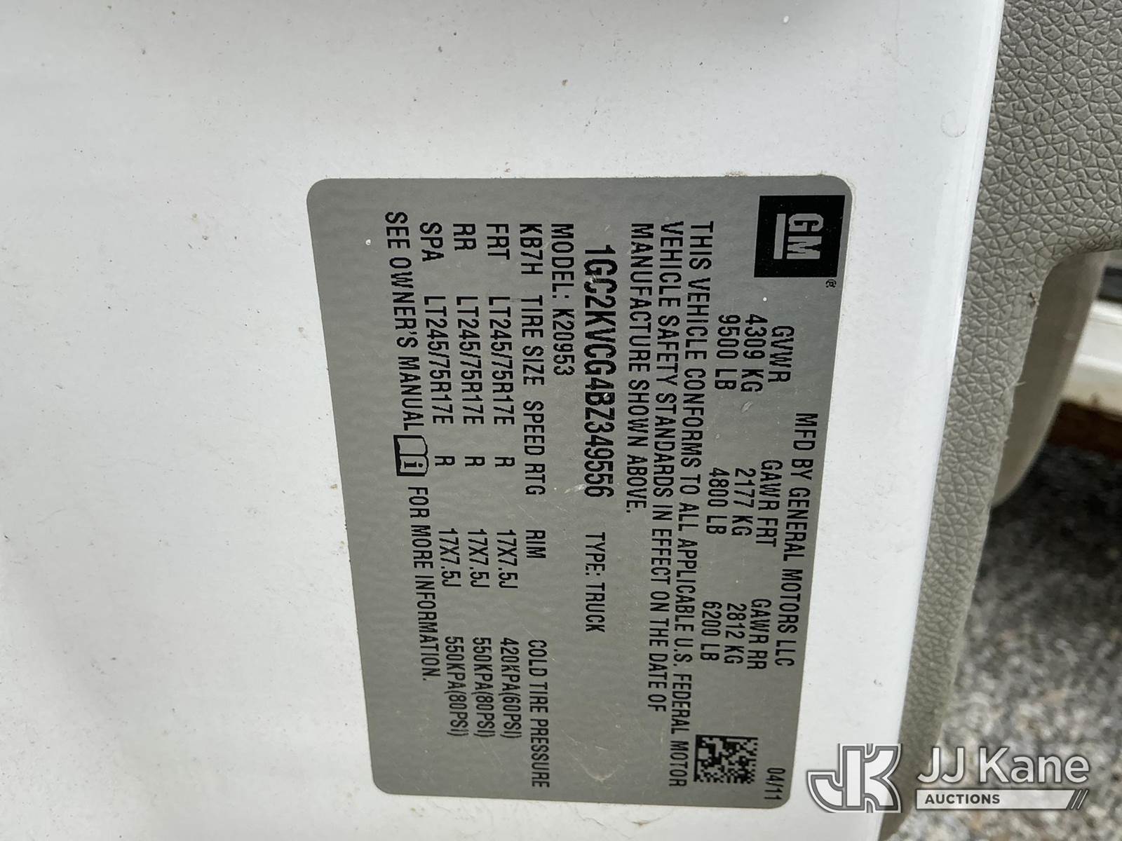 2011 Chevrolet Silverado 2500HD 4x4 Extended-Cab Pickup Truck, 6.0L V8 OHV 16V FFV gas, 6-Speed Automatic, A/C, (311,448 miles) (Runs & Moves) (ABS Light On, Traction Control Lights On, Body/Rust Damage, Both Inner Door Handles Inoperable) This is a Titled Item NOTE: This unit is being sold AS IS/WHERE IS via Timed Auction and is located in Fort Wayne, IN. For more information & removal arrangements please contact Office Staff @ (260) 450-9822. Load out by appointment only, Buyer/Hauler must present copy of paid invoice upon arrival. Purchaser acknowledges ALL lots must be removed within (10) business days of Auction, or a storage fee may be incurred. For load out and pick up information, please reference the hauler sheet sent out after purchase. (Buyer is responsible for removal. Assistance by consignor or JJ Kane Auctions is not assured.)