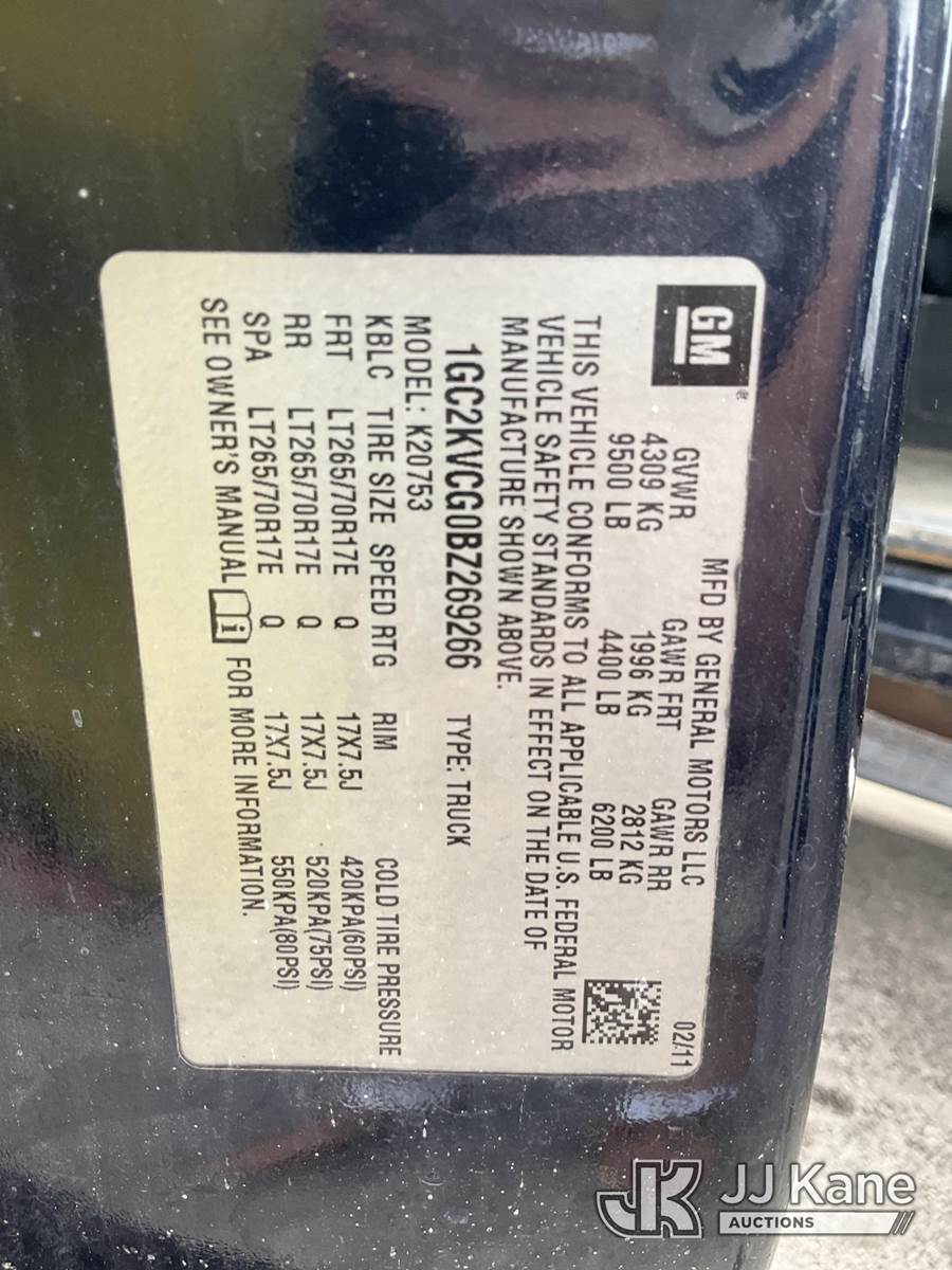 2011 Chevrolet Silverado 2500HD 4x4 Extended-Cab Pickup Truck, 6.0L V8 OHV 16V FFV gas, 6-Speed Automatic, A/C, with front winch, (151,856 miles) (Runs & Moves) (Jump To Start, Missing Driver Side Door Panel And Parts, Body/Paint Damage) This is a Titled Item NOTE: This unit is being sold AS IS/WHERE IS via Timed Auction and is located in Ocala, FL. Inspection & preview days for this unit are by appointment only; please contact us at contact@jjkane.com or 84-Go-JJKane for more details. For more information & removal arrangements please contact Mike Lessard @ (352) 629-6677. (Buyer is responsible for removal. Assistance by consignor or JJ Kane Auctions is not assured.)