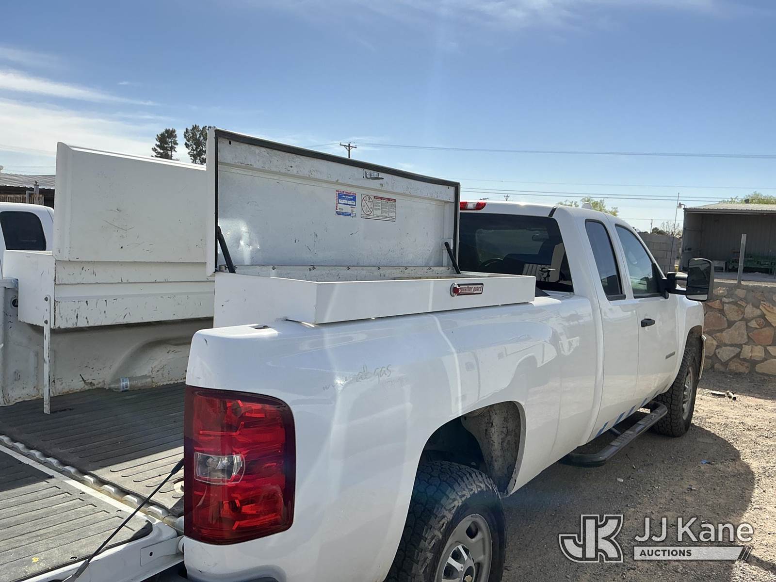 2011 Chevrolet Silverado 2500HD Extended-Cab Pickup Truck, 8-cyl gas, 4WD, 6-Speed Automatic, A/C, with two bed mounted toolboxes, bed mounted gas or chemical container enclosed inside of a metallic box , (177,242 miles) (Not Running, Condition Unknown, Cranks, Check Engine Light On, Paint & Body Damage) This is a Titled Item NOTE: This unit is being sold AS IS/WHERE IS via Timed Auction and is located in El Paso, TX. Inspection & preview days for this unit are by appointment only; please contact us at contact@jjkane.com or 84-Go-JJKane for more details. (Buyer is responsible for removal. Assistance by consignor or JJ Kane Auctions is not assured.)