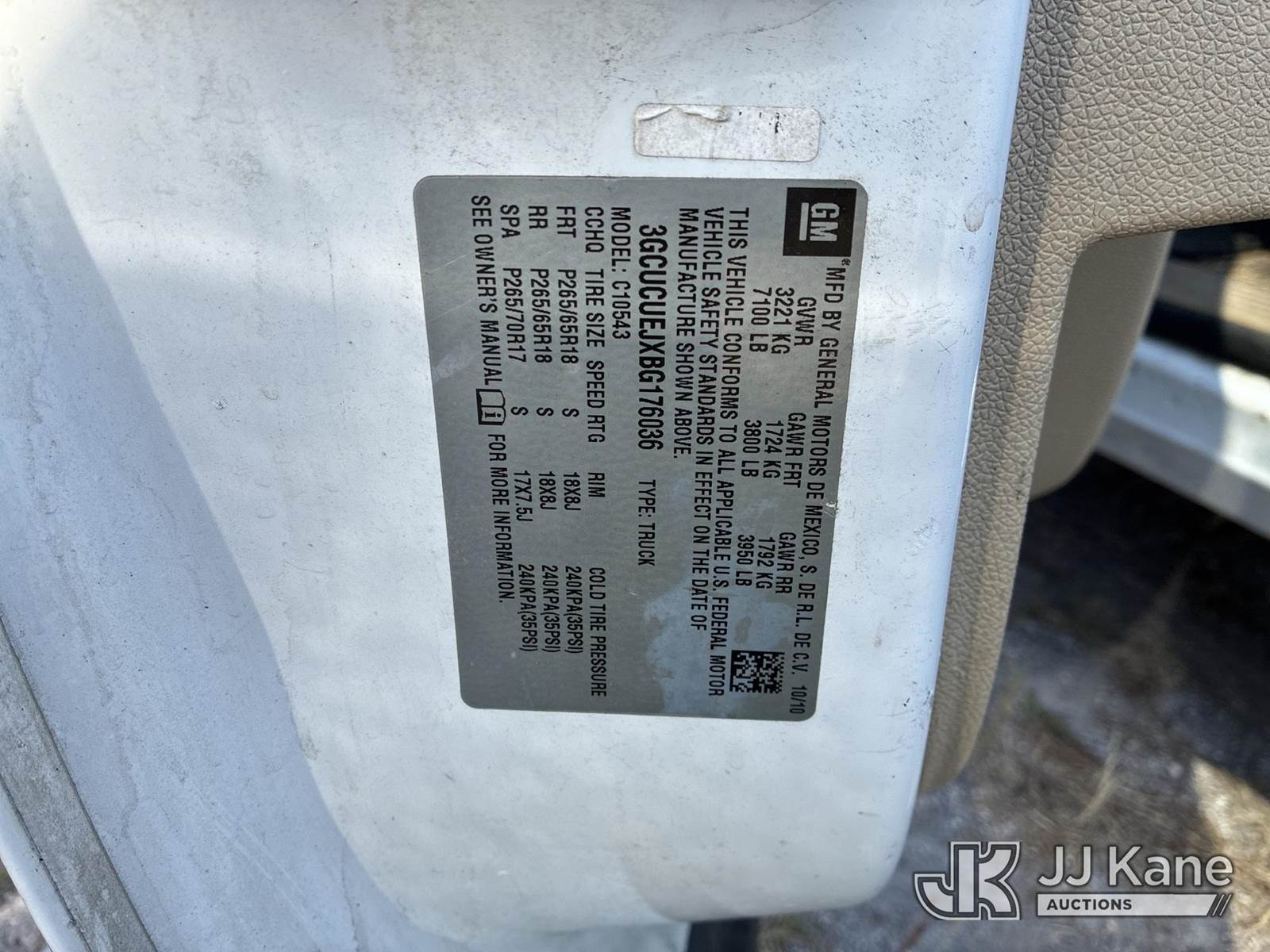 2011 Chevrolet Silverado Hybrid Crew-Cab Pickup Truck, 8-cyl, Gas/Electric, Auto, A/C, with service cap, (125,768 miles) (Not Running, Condition Unknown) (Paint/Body Damage, Interior Smell) (FL Residents Purchasing Titled Items - tax, title & registration fees will be collected at the maximum rate of $400.00 under 25,999 and $800.00 for Over 26,000 and $250.00 trailers - Proof of insurance is mandatory; Out of State Residents Purchasing Title Items - tax will be collected based upon your state rate.) This is a Titled Item NOTE: This unit is being sold AS IS/WHERE IS via Timed Auction and is located in Thonotosassa, FL. Inspection & preview days for this unit are the 2 business days prior to the first day of items closing for this auction, item is located at 11720 N US 301 Thonotosassa, Fl 33592 and hours of operations are 8a-4p. For pre-sale questions, please contact Office Staff @ (813) 986-2485. (Buyer is responsible for removal. Assistance by consignor or JJ Kane Auctioneers is not assured.)