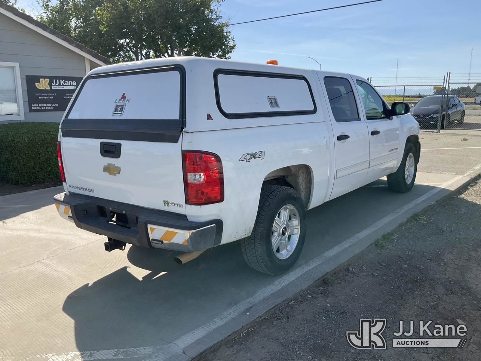 2011 Chevrolet Silverado Hybrid Crew-Cab Pickup Truck, s/n 3GCUKUEJ1BG253900, 6.0L V8 OHV 16V 4WD, HYBRID, 4-Speed Automatic, A/C, with Camper shell, tow package, strobe light, (109,286 miles) (Runs & Moves) This is a Titled Item NOTE: This unit is being sold AS IS/WHERE IS via Timed Auction and is located in Dixon, CA. Inspection & preview days for this unit are the 2 business days prior to the first day of items closing for this auction, item is located at 8668 Sparling Ln Dixon, CA 95620 and hours of operations are 8a-4p. For pre-sale questions, please contact JJ Kane Staff at (707) 678-8060 (dixon@jjkane.com). Dealer License Number 45696. (Buyer is responsible for removal. Assistance by consignor or JJ Kane Auctions is not assured.)