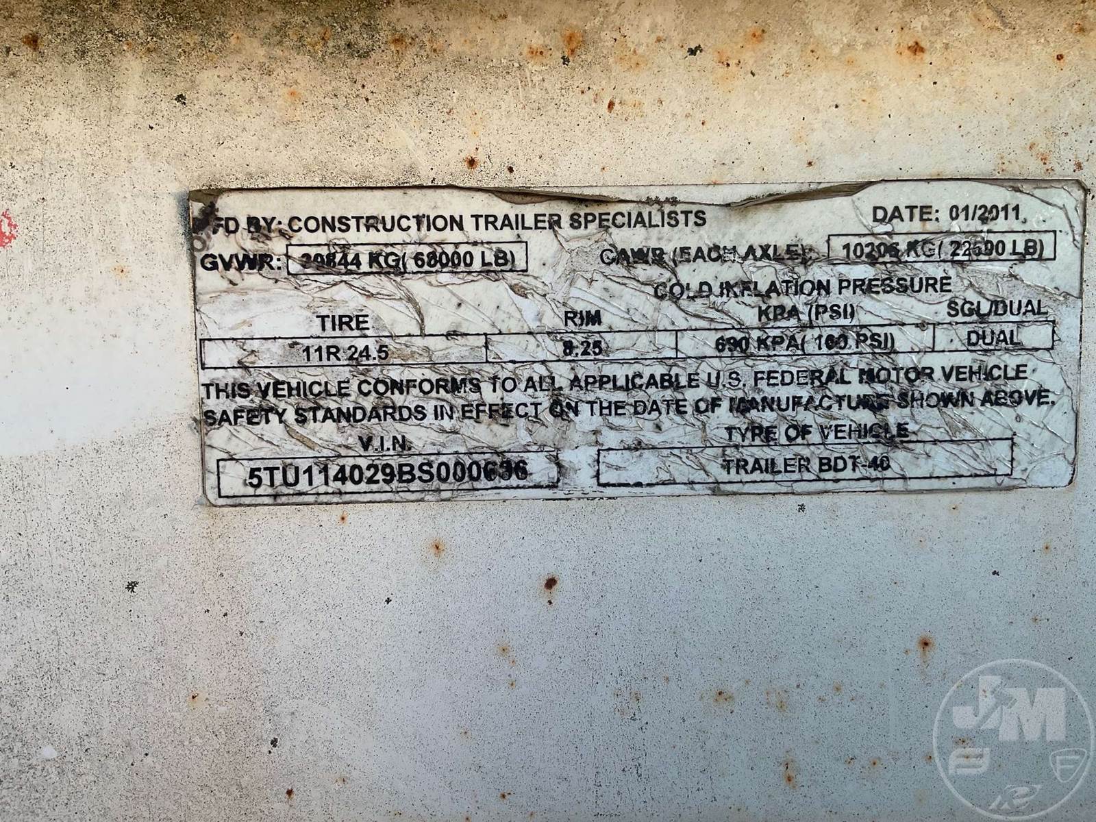 2011 Construction Trailer Specialists (CTS) BDT-40 Dump Trailer