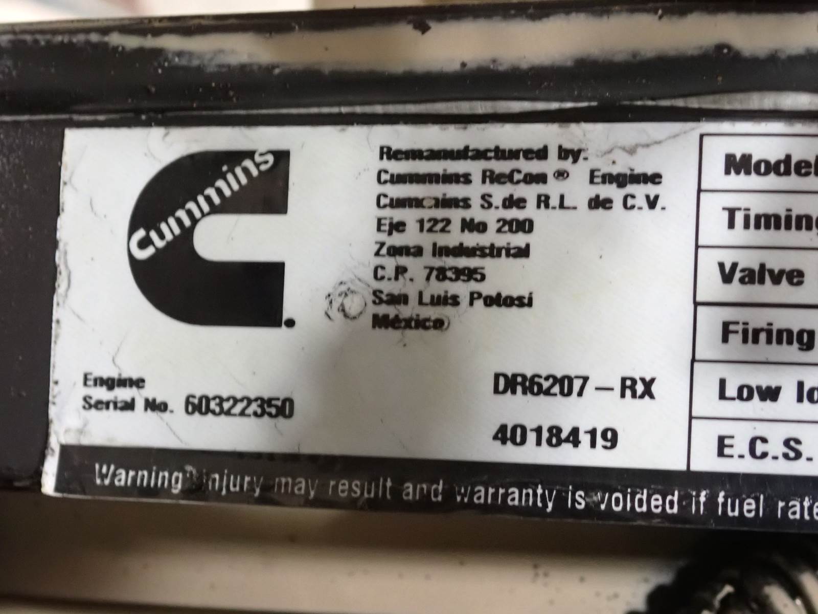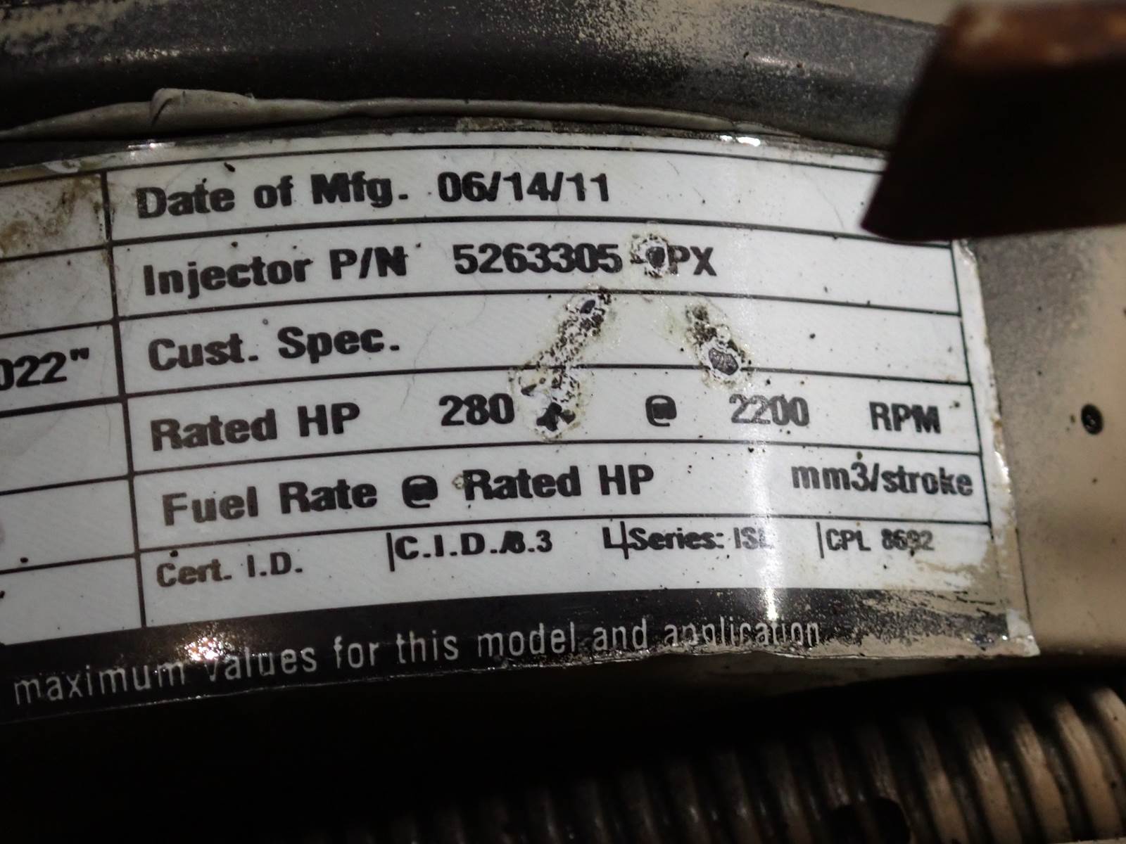 2011 REMAN Cummins ISC-280 (labeled C8.3-300E,) common rail fuel system, CM850, CPL 8692, 300 HP, 8.3 liter displacement. Will interchange w/ most 2004-2007 truck engine applications, contact us for help w/ interchange. 348,832 total miles on ECM. TEST RAN CLEAN, SEE VIDEO. 68 PSI oil pressure observed at cold idle, no smoke or blowby visible during cold test run.