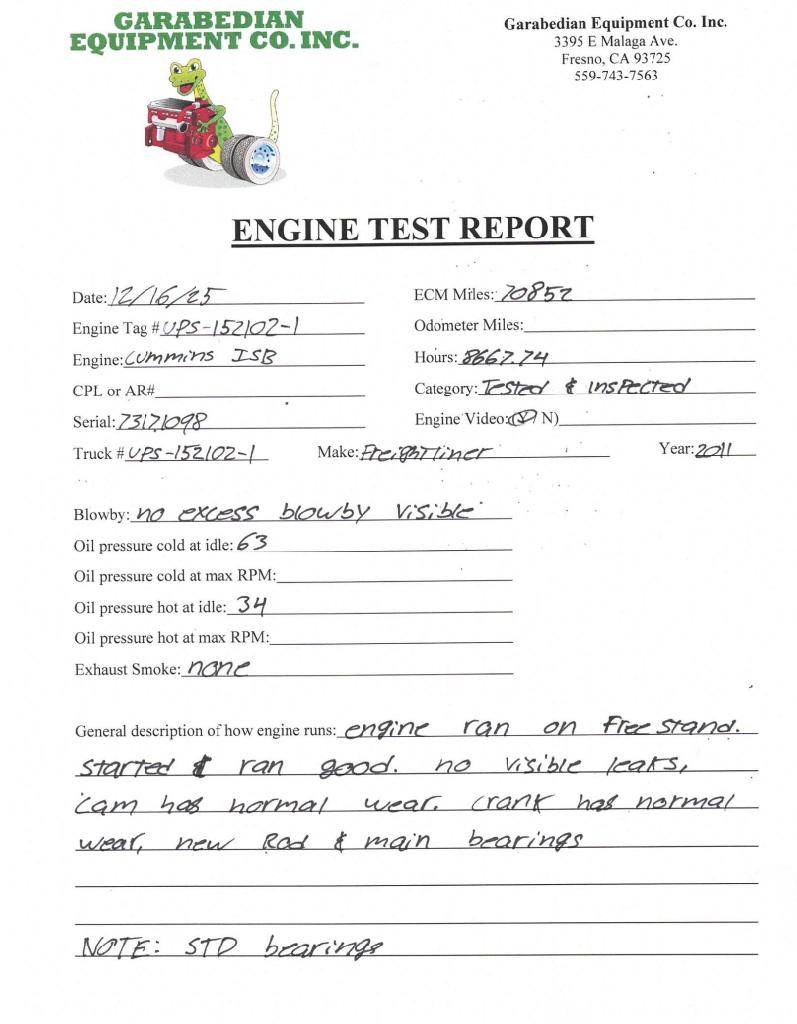 ISB 6.7 EPA 10, 200 HP, S/N 73171098, 3PL-3070, CM2250 - New Bearings & Seals, (Please see video of engine running and test report)