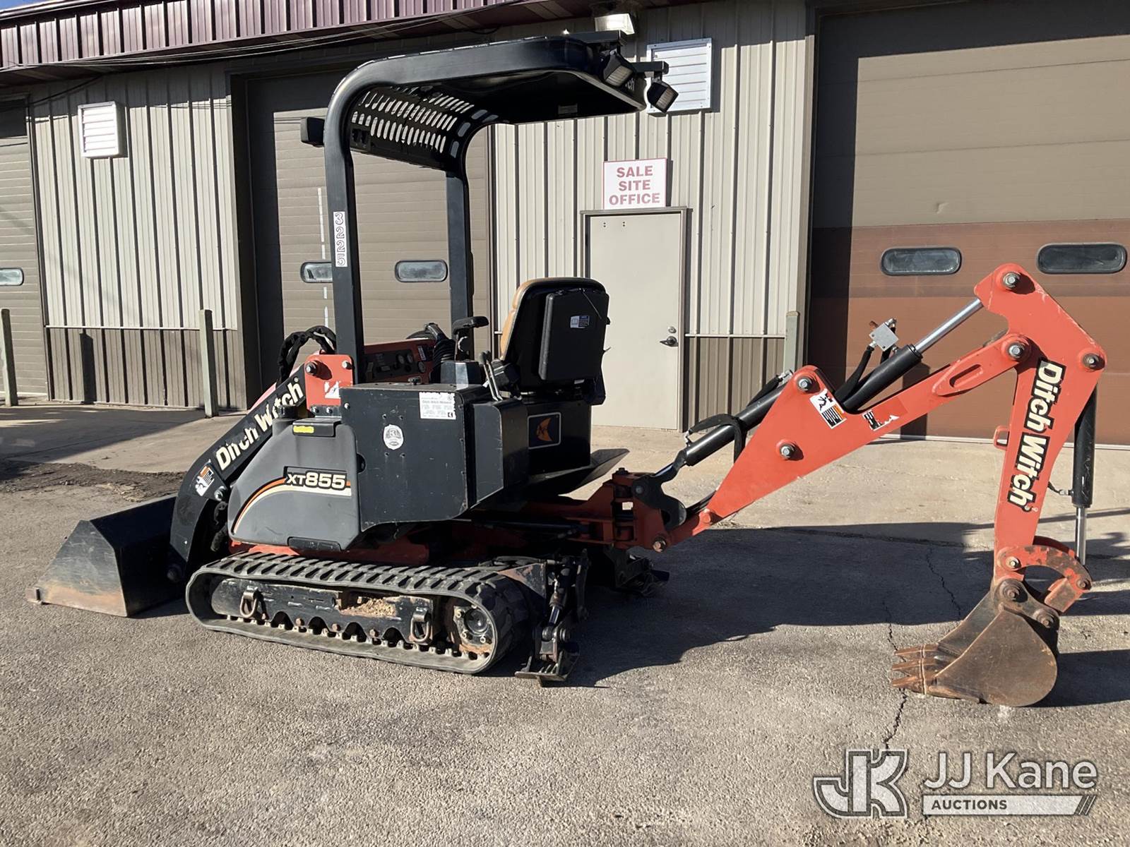 2011 Ditch Witch XT855 Mini Hydraulic Excavator/Tool Carrier, s/n CMWXT855PB0000053, Kubota diesel, Hydraulic Driven, with aux hydraulics, rubber tracks, front loader bucket, rear digging bucket & ROPS, (Runs, Moves & Operates) (Reads 135 hours) NOTE: This unit is being sold AS IS/WHERE IS via Timed Auction and is located in South Beloit, IL. Inspection & preview days for this unit are the 2 business days prior to the first day of items closing for this auction, item is located at 14354 Dearborn Ave South Beloit, IL and hours of operations are 8a-4p. For pre-sale questions, please contact Derek Eklund at (608) 904-0618 or (derek.eklund@jjkane.com). (Buyer is responsible for removal. Assistance by consignor or JJ Kane Auctions is not assured.)