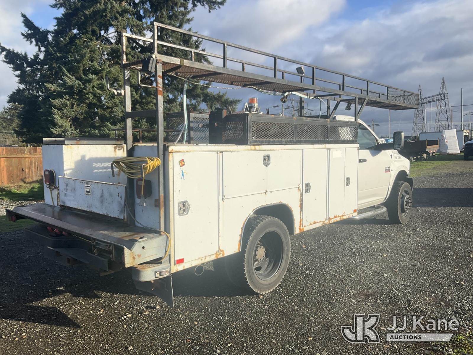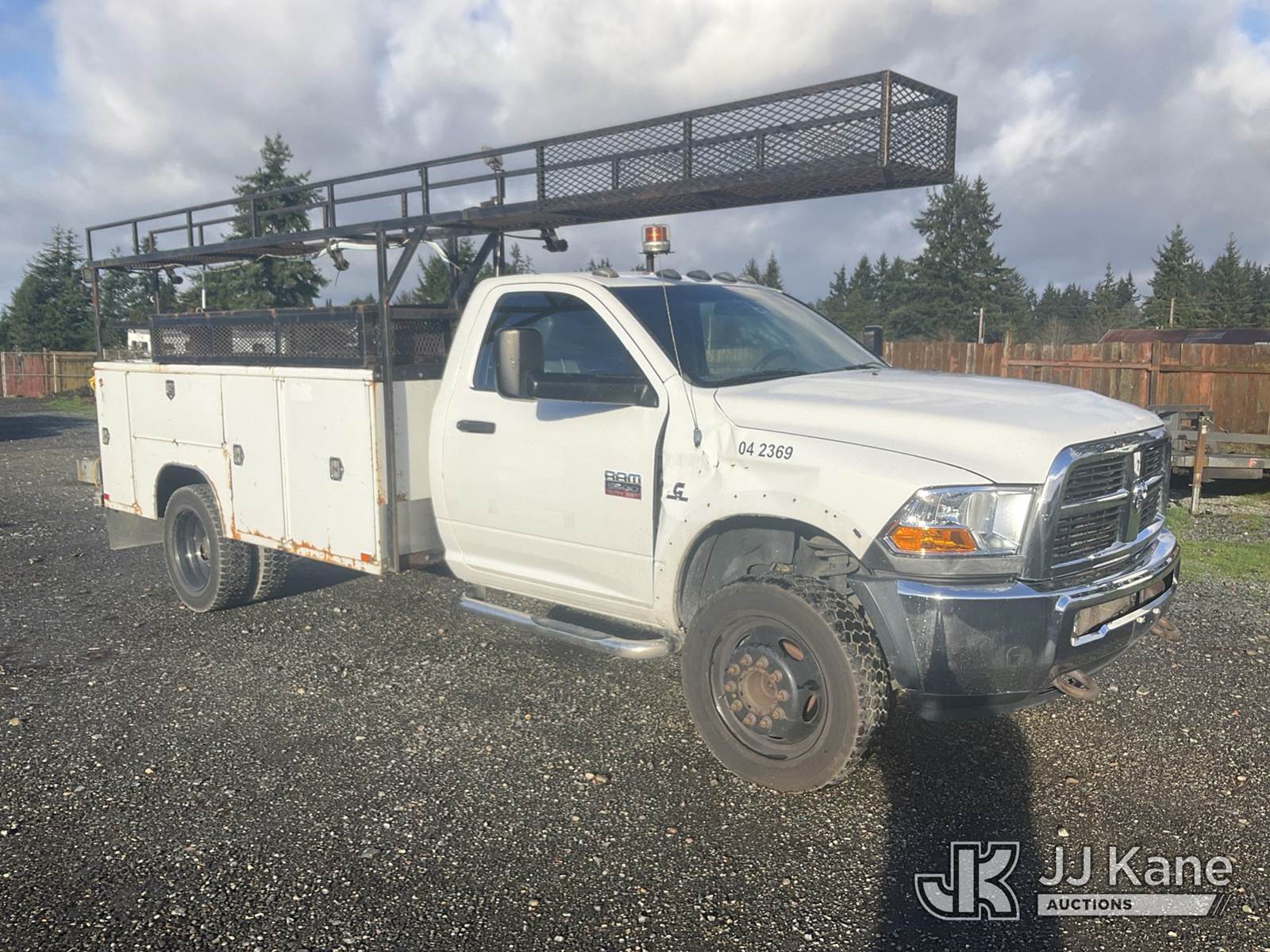 2011 Dodge Ram 5500 4x4 Service Truck, 6.7L L6 OHV 24V TURBO diesel, 6-Speed Automatic, A/C, (156,564 miles) (Runs & Moves) (Body Damage) This is a Titled Item NOTE: This unit is being sold AS IS/WHERE IS via Timed Auction and is located in Eatonville, WA. Inspection & preview days for this unit are by appointment only; please contact us at contact@jjkane.com or 84-Go-JJKane for more details. (Buyer is responsible for removal. Assistance by consignor or JJ Kane Auctions is not assured.)