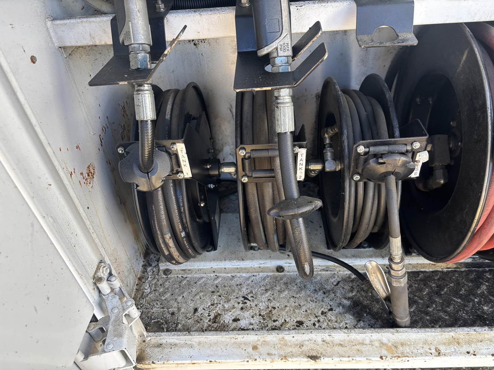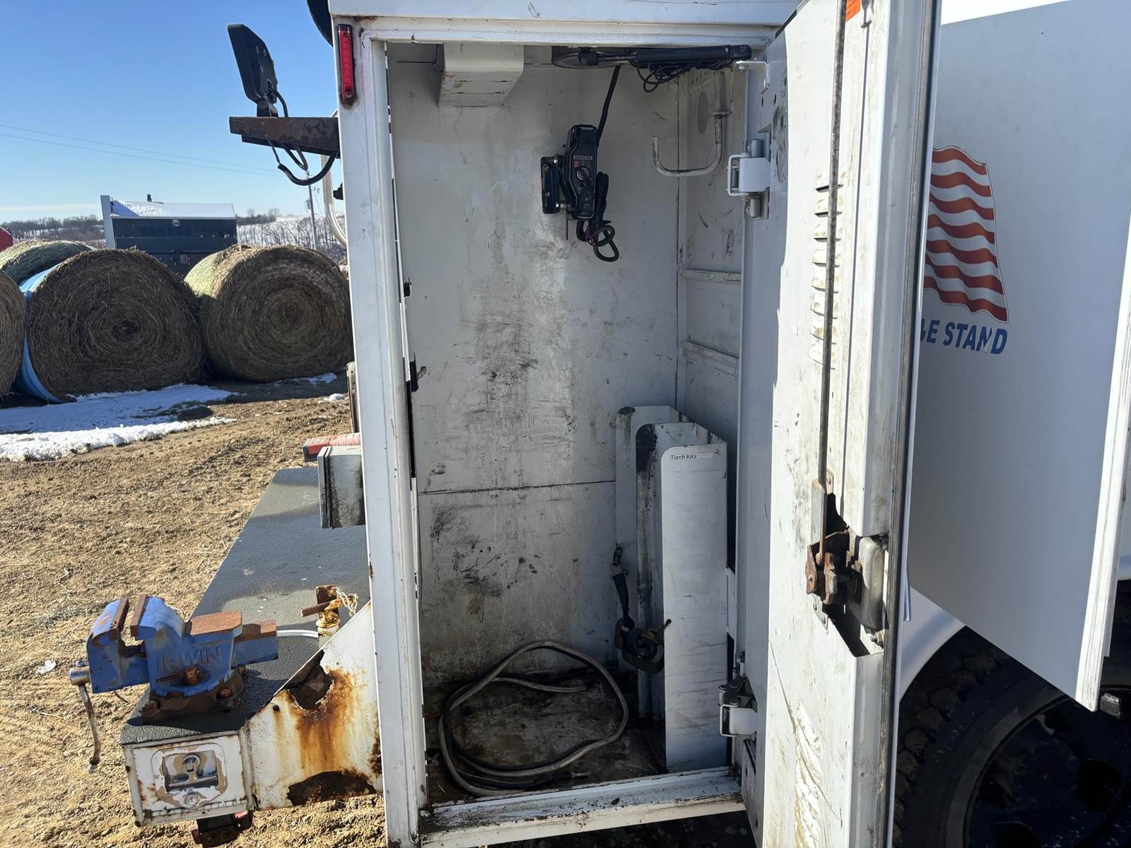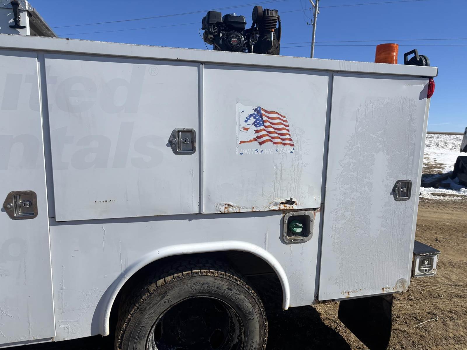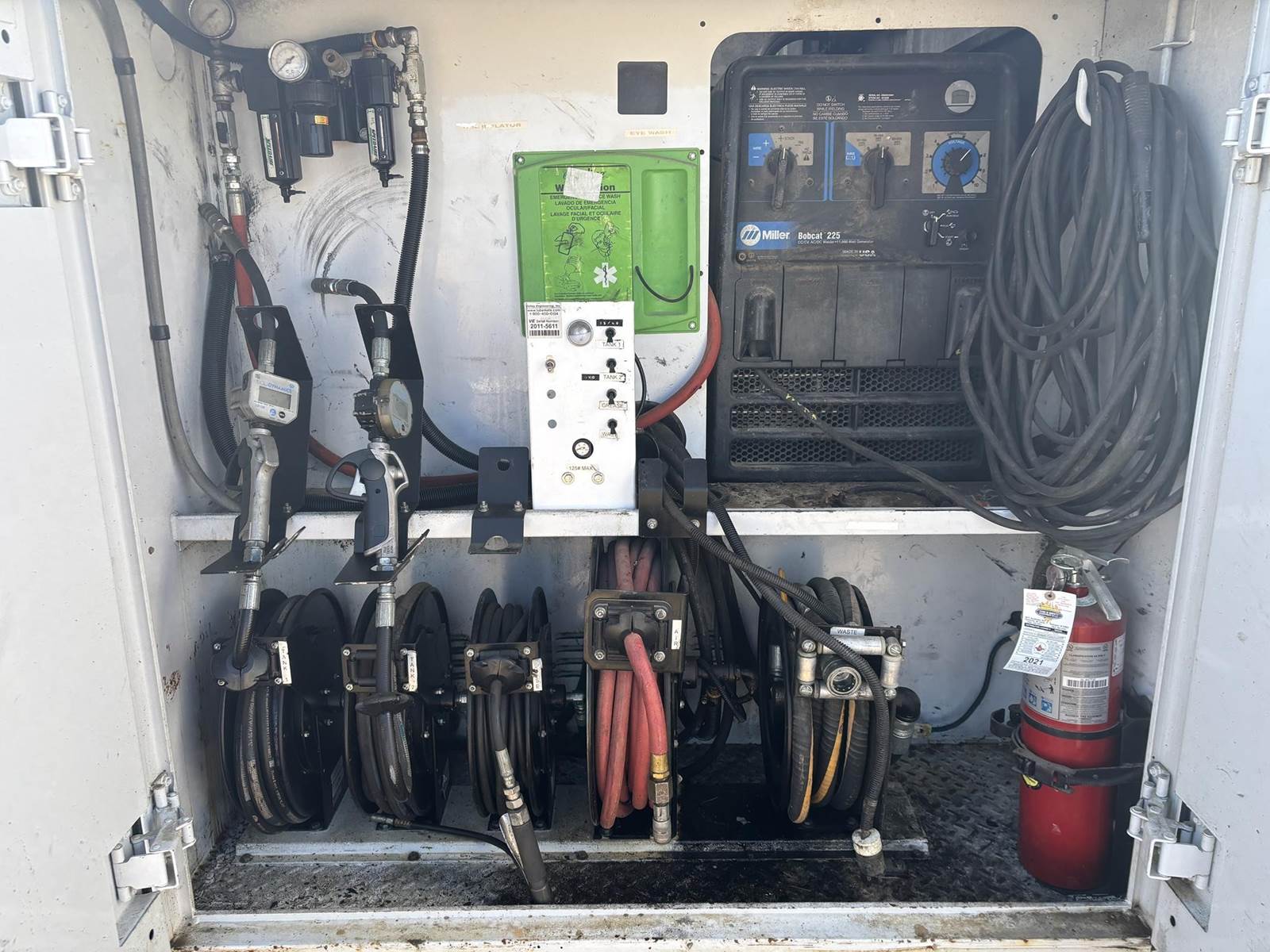 6.7L Cummins Turbo Diesel Engine, Automatic Transmission, (7) Door Service Body, Shelving, Cabinets, E-Track, Miller Bobcat 225 AC/DC Multi Process Welder W/ 205 Hours Shown, 120/240V Outlets, Mi-T-M Honda GX270 Powered Air Compressor, 175PSI Max Pressure, Air Hose Reel, Hydraulic Tank, (4) Other Hose Reels, LiquiDynamics Digital Nozzles, Integrated Trailer Brake Controller, (4) Auxiliary Switches, Heat, A/C, Radio, Cruise Control, Bumper Mounted Vice, 225/70R19.5 Tires