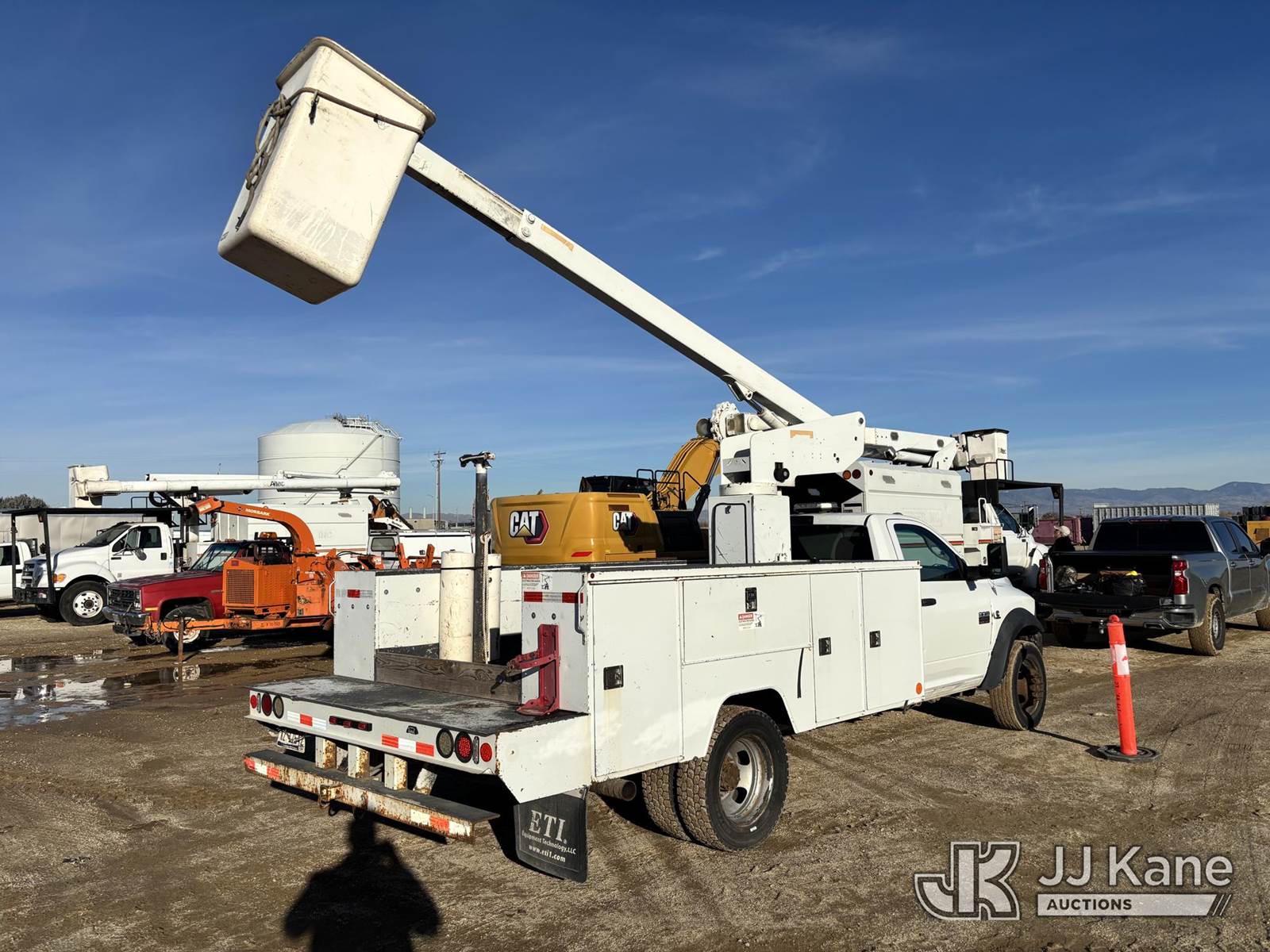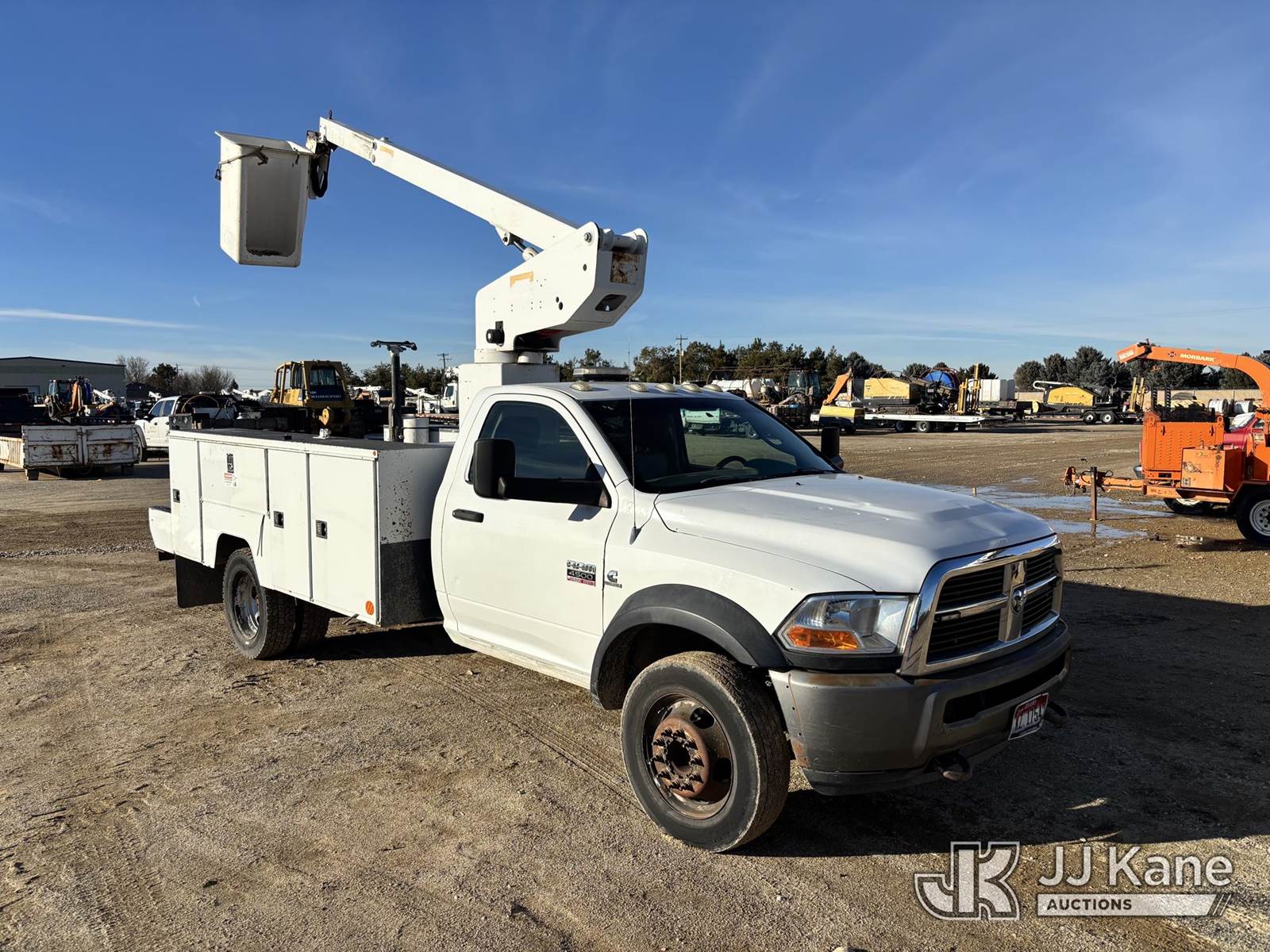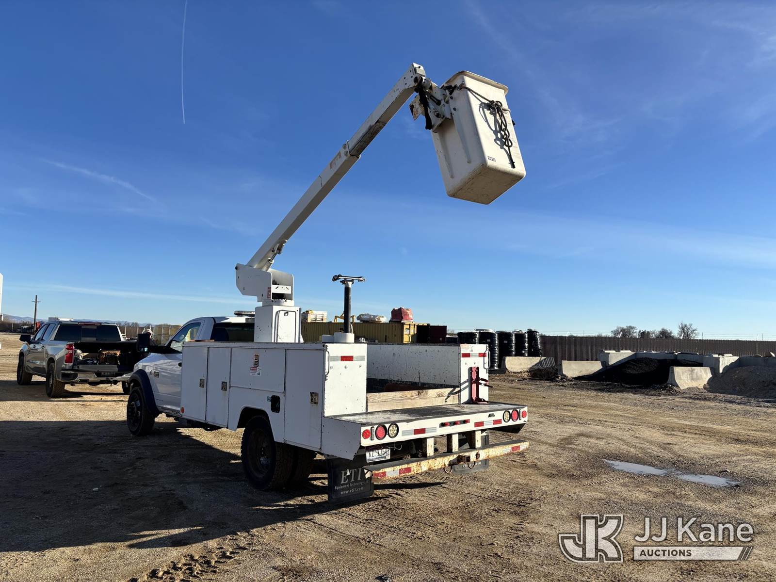ETI ETT29-SNT, 34 ft, Telescopic Bucket Truck s/n 0411T98613, with single-man bucket, mounted behind cab on 2011 Dodge Ram 4500 Regular Cab 4WD Service Truck, 6.7L L6 OHV 24V TURBO DIESEL Auto, A/C, (140,666 miles) (Runs, Moves & Upper Operates.) This is a Titled Item NOTE: This unit is being sold AS IS/WHERE IS via Timed Auction and is located in Nampa, ID. For Inquires please contact Mike at mike.vantrimpont@jjkane.com or 208-986-2285 (Monday Through Friday 8am to 4pm Mountain Time) (Missing manuals, See Auction Company for Manufacturers Information to obtain manuals) (Buyer is responsible for removal. Assistance by consignor or JJ Kane Auctions is not assured.)