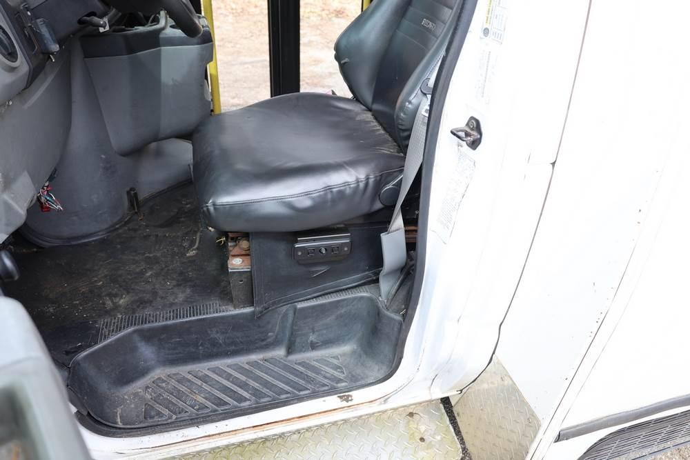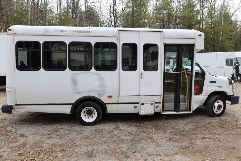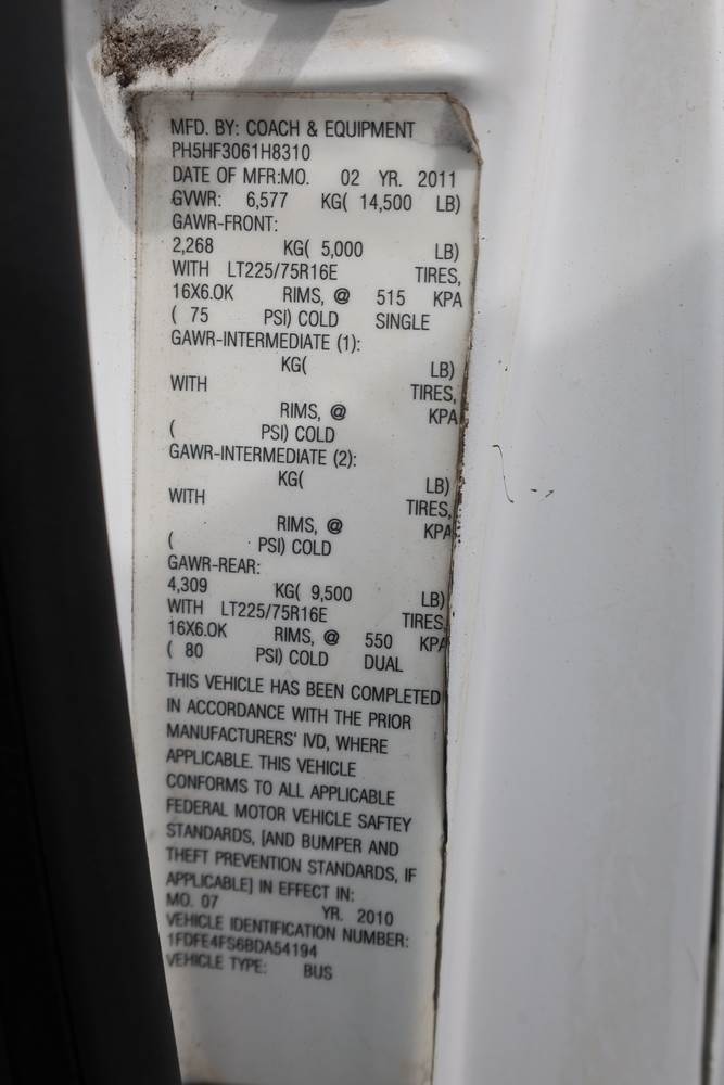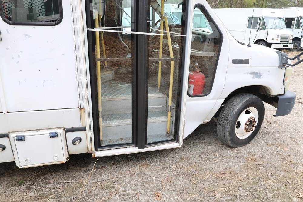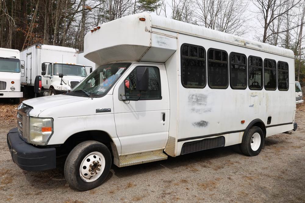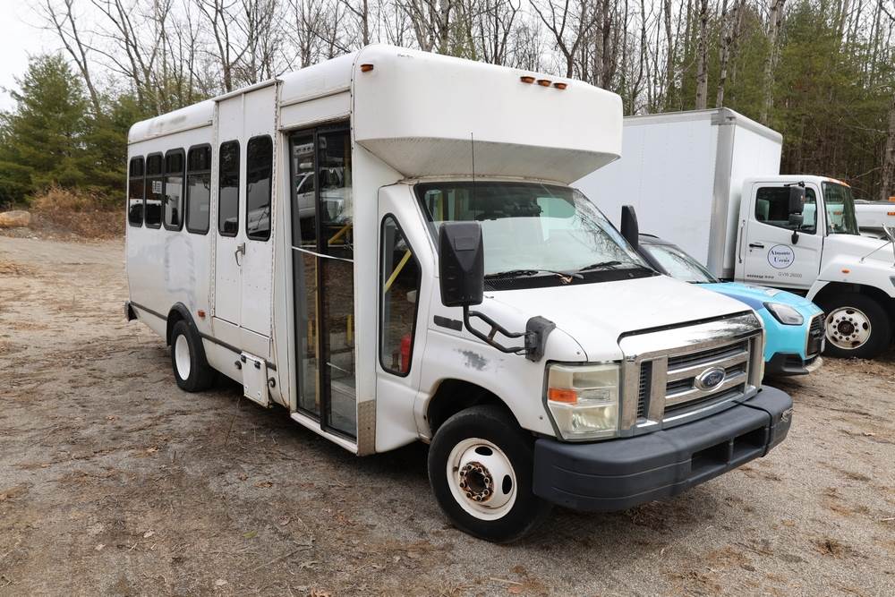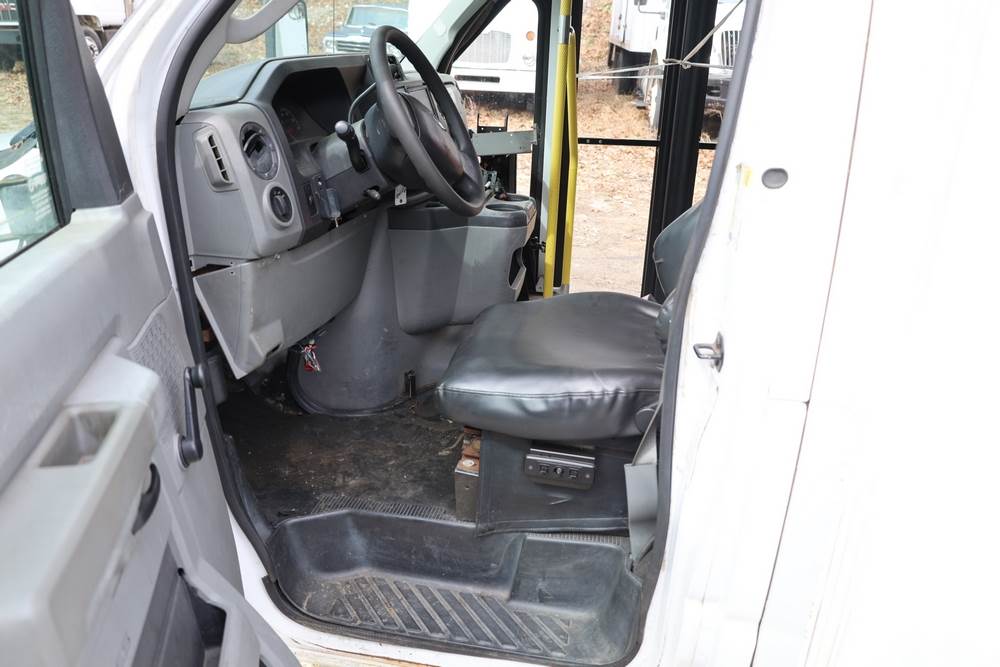 2011 Ford Econoline E450 with a 6.8L V10 SOHC 20V engine. VIN: 1FDFE4FS6BDA54194. Odometer reading: 271290. Body: cutaway bus. Passenger bus body with multiple rows of seating, Braun wheelchair lift, side entry door, rear emergency exit door, interior lighting, rear climate unit, and grab rails. No controller for lift, does not turn on. Runs and drives. Transfer will be done through NJ dealership paperwork. May not pass NYS Inspection.