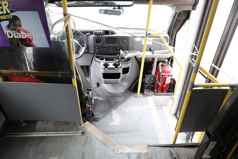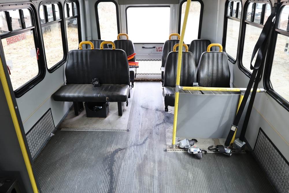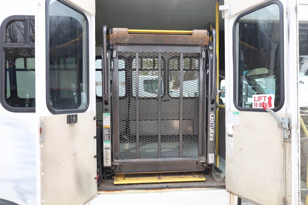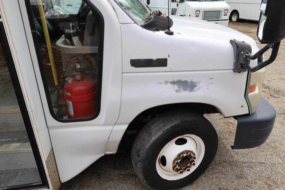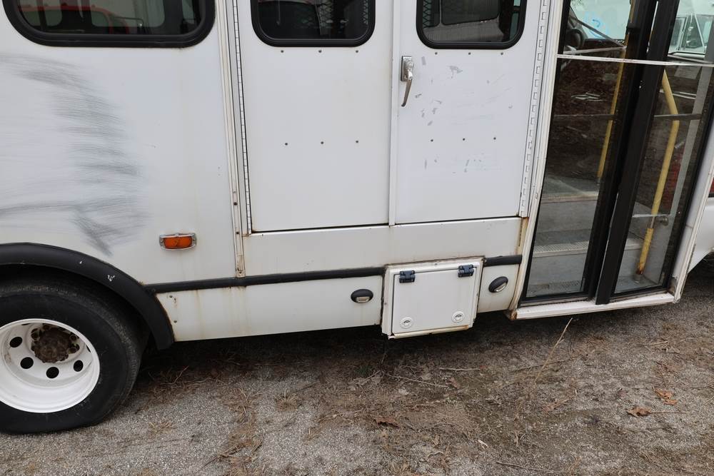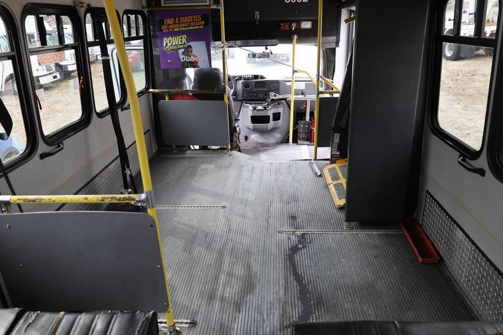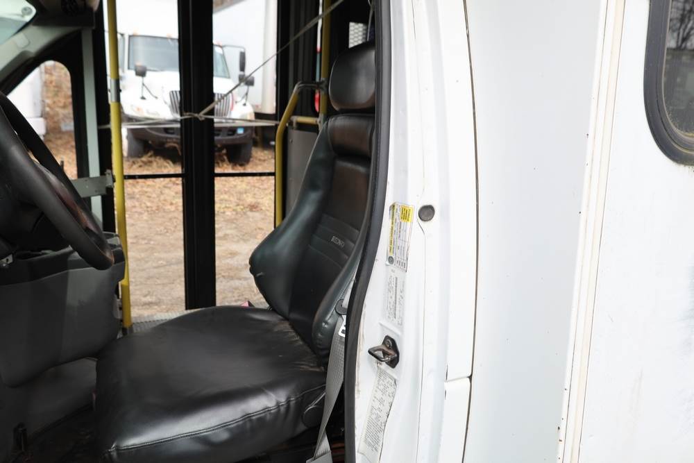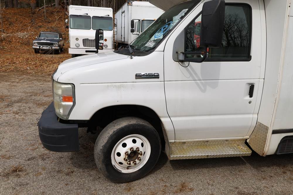 2011 Ford Econoline E450 with a 6.8L V10 SOHC 20V engine. VIN: 1FDFE4FS6BDA54194. Odometer reading: 271290. Body: cutaway bus. Passenger bus body with multiple rows of seating, Braun wheelchair lift, side entry door, rear emergency exit door, interior lighting, rear climate unit, and grab rails. No controller for lift, does not turn on. Runs and drives. Transfer will be done through NJ dealership paperwork. May not pass NYS Inspection.