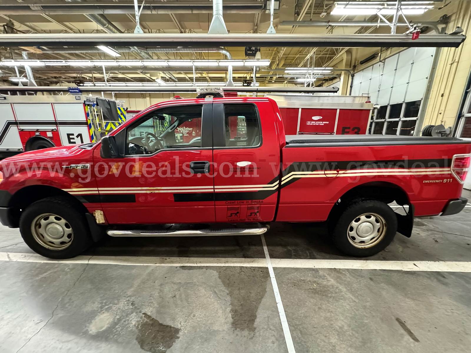 2011 Ford F-150 EXTENDED CAB PICKUP 4-DR, 5.0L V8. Emergency Response: 1. Whelen light bar 2. VC7 Strike Force siren with mic Exterior: 1. Front tow hooks 2. Interval wipers 3. Locking removable tailgate w/lift assist 4. Rear solar tinted glass 5. Spare tire and wheel lock 6. Toyo tires-open country Interior: 1. Air conditioning 2. Black vinyl floor covering 3. Day/night rear view mirror 4. Tilt steering wheel Functional 1. 2 SPD transfer case 2. Auxiliary power point 3. Cargo box tie down hooks 4. Easy fuel cap-less filler. 14mpg city, 19mpg highway. 36 gallon fuel tank 5. Fail safe cooling system 6. Fully boxed frame 7. Power windows and door locks 8. Mechanical shift on the fly 9. Power rack steering 10. Stabilizer bar, front 11. Tire pressure monitoring system 12. Trailer sway control Safety/Security 1. 4 wheel disc brakes/ABS 2. Roll stability control 3. Airbags, front side seat 4. Rear high mount stop lamp 5. Safety canopy 6. Securilock anti theft 7. Includes 2 keys **GovDeals.com is the online auction platform where you can bid on and buy government surplus**
