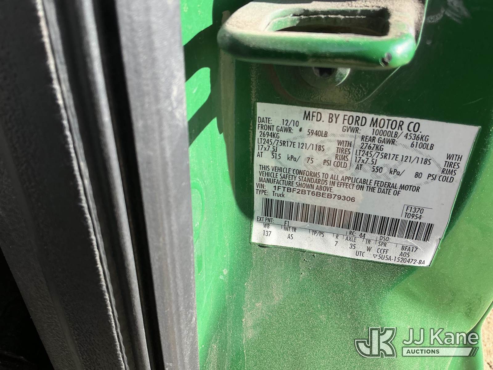 2011 Ford F-250 SD Pickup Truck, 6.7L Diesel 4wd, 6-Speed Automatic, A/C, (141,472 miles) (Not Running, Condition Unknown) (Bad Engine, Started Once Then Shut Down, Knocking Sound In Engine, Radio Does Not Operate, Check Engine Light On, Drivers Side Rear Brake Light & Turn Signal Out) (No Emissions Test Provided, See Bidder Agreement ) (Non Drive Away Removal Only: Fails Safety Inspection) (Reads 6,190 hours) This is a Titled Item NOTE: This unit is being sold AS IS/WHERE IS via Timed Auction and is located in Fort Lupton, CO. Inspection & preview days for this unit are the 2 business days prior to the first day of items closing for this auction, item is located at 2105 Northland Dr Fort Lupton, CO 80621 and hours of operations are 8a-4p. For pre-sale questions, please contact Dakota Hoffman @ (720) 621-0786. Dealer License Number 47109. (Buyer is responsible for removal. Assistance by consignor or JJ Kane Auctions is not assured.)