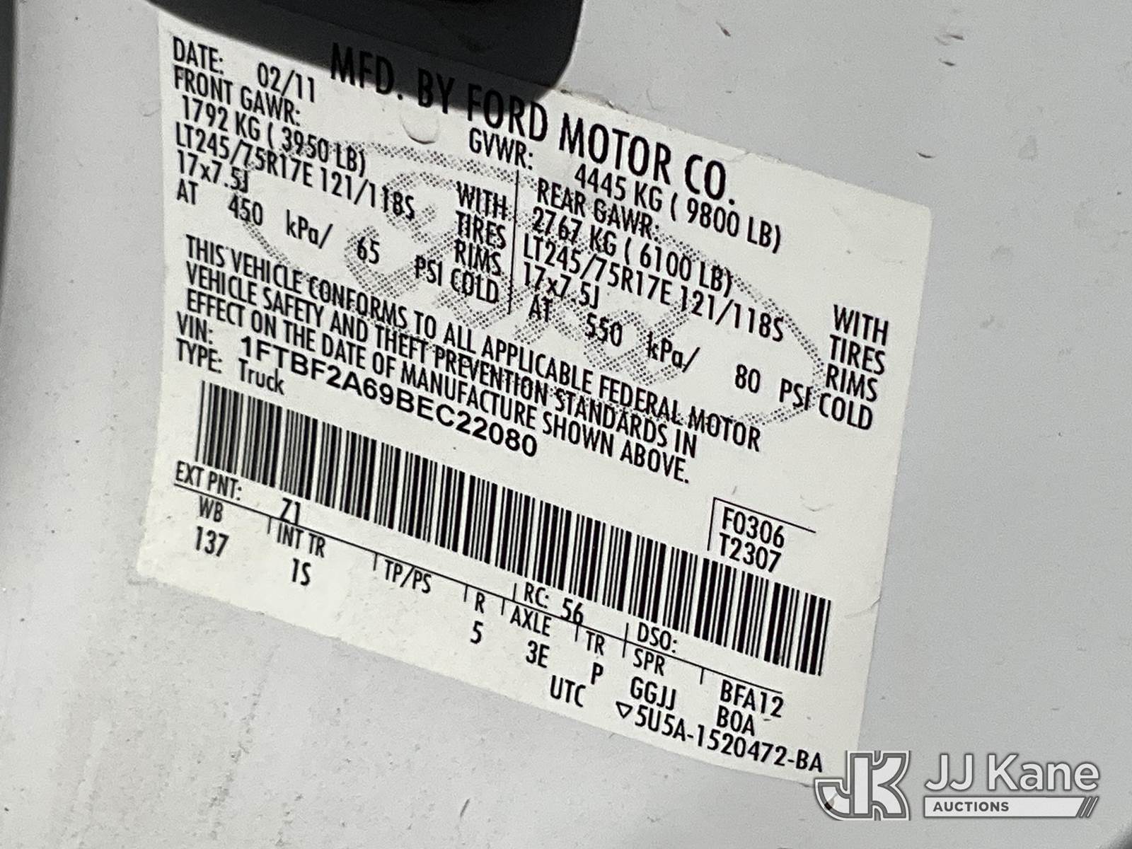 2011 Ford F-250 SD Pickup Truck, 8-cyl gas, RWD, 6-Speed Automatic, A/C, (106,876 miles) (Runs & Moves ) This is a Titled Item NOTE: This unit is being sold AS IS/WHERE IS via Timed Auction and is located in Salt Lake City, UT. Inspection & preview days for this unit are the 2 business days prior to the first day of items closing for this auction, item is located at 2353 N Redwood Rd Salt Lake City, UT 84116 and hours of operations are 8a-4p. Titles executed exactly as bidder registered. Ensure your name and/or business name and address in JJ Kane and/or ProxiBid is correct before bidding. For pre-sale questions, please contact Office Staff @ (801) 519-0123. (Buyer is responsible for removal. Assistance by consignor or JJ Kane Auctions is not assured.)