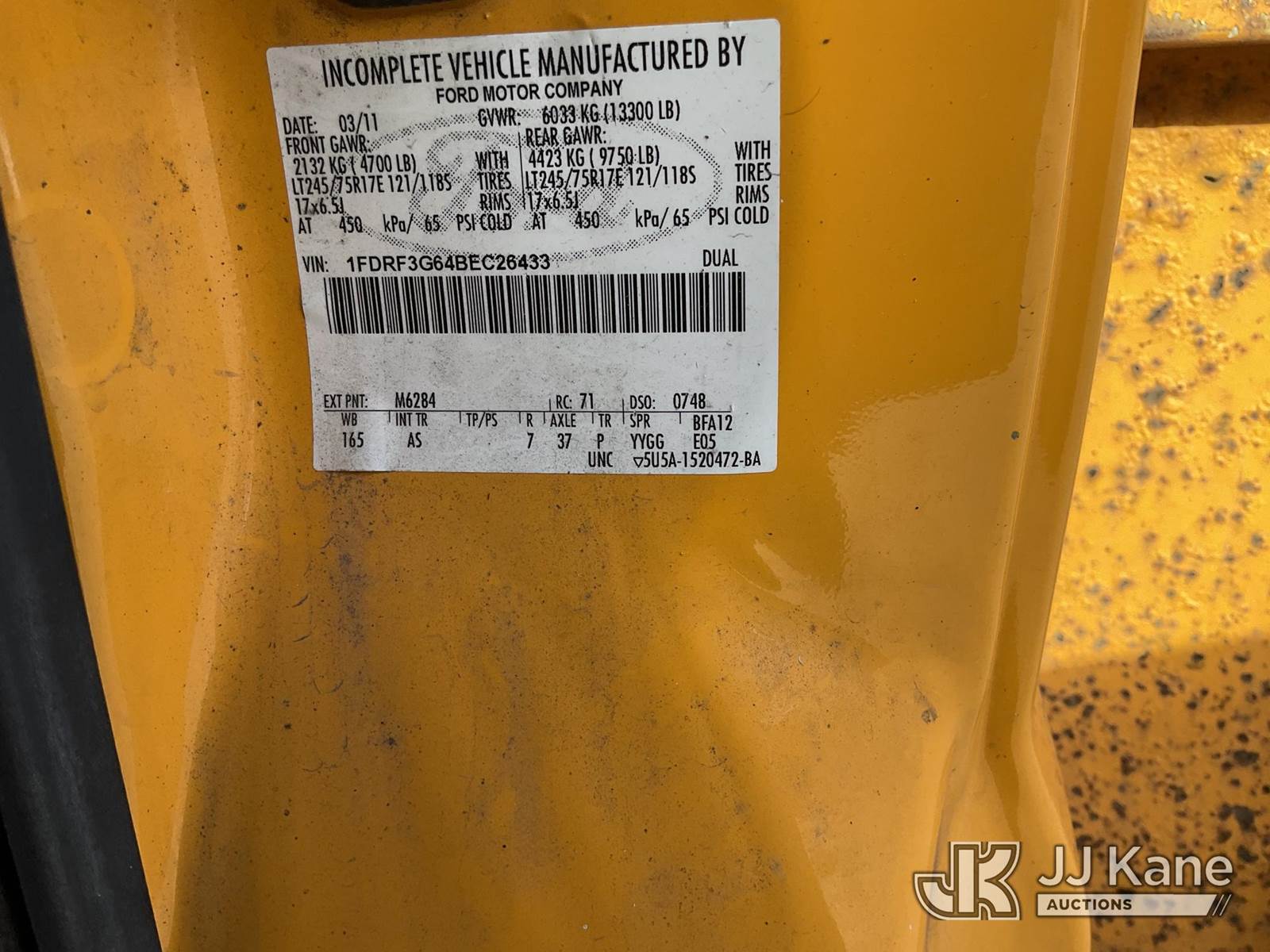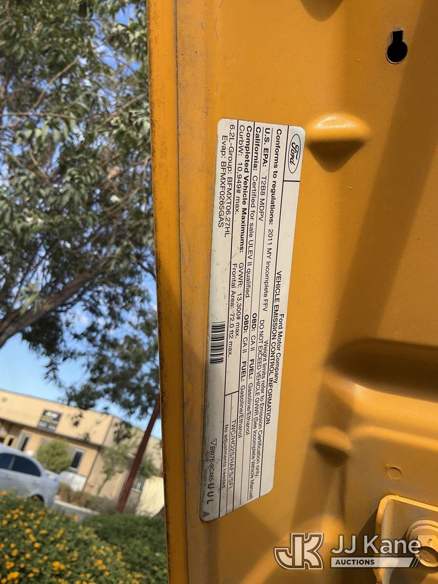 2011 Ford F-350 SD Flatbed/Service Truck, s/n 1FDRF3G64BEC26433, 8-cyl gas, 6-Speed Automatic, A/C, with tow package, (171,310 miles) (Run & Moves) This is a Titled Item NOTE: This unit is being sold AS IS/WHERE IS via Timed Auction and is located in Jurupa Valley, CA. Inspection & preview days for this unit are the 2 business days prior to the first day of items closing for this auction, item is located at 4510 Muth Way Jurupa Valley, CA 92509 and hours of operations are 8a-4p. For pre-sale questions, please contact please contact Office Staff @ (310) 353-7140. Dealer License Number 45696. (Buyer is responsible for removal. Assistance by consignor or JJ Kane Auctioneers is not assured.)