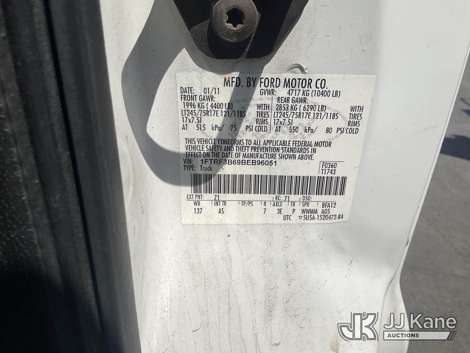 2011 Ford F-350 SD XL 4WD Service Truck, s/n 1FTRF3B69BEB96051, 6.2L V8 OHV 16V 4WD, GAS, 6-Speed Automatic, A/C, with Tow Package , (222,909 miles) (Runs & Moves (Air Bag light On Code Reads P068A,Right Sid Minor Dent On Passenger Door)) (Bidding Restricted to Licensed Vehicle Dealers Only), This is a Titled Item NOTE: This unit is being sold AS IS/WHERE IS via Timed Auction and is located in Jurupa Valley, CA. Inspection & preview days for this unit are the 2 business days prior to the first day of items closing for this auction, item is located at 4510 Muth Way Jurupa Valley, CA 92509 and hours of operations are 8a-4p. For pre-sale questions, please contact please contact Office Staff @ (310) 353-7140. Dealer License Number 45696. (Buyer is responsible for removal. Assistance by consignor or JJ Kane Auctions is not assured.)