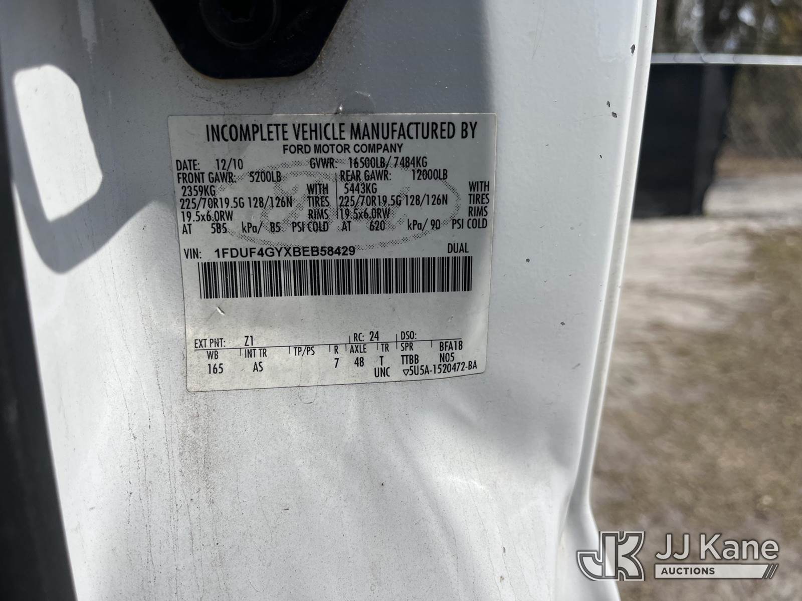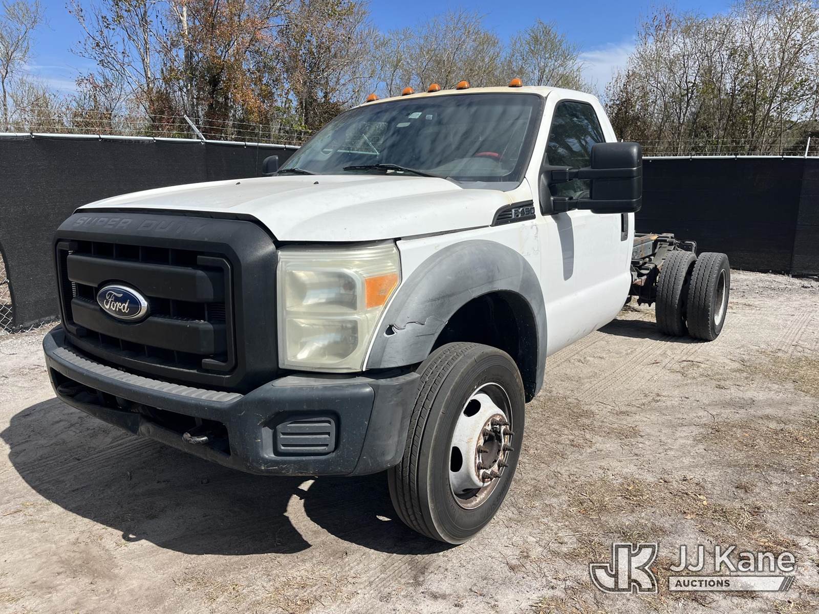 2011 Ford F-450 SD Cab & Chassis, 10-cyl gas, RWD, Auto, A/C, (200,318 miles) (Runs, Moves) (Body Damage)(FL Residents Purchasing Titled Items – tax, title & registration fees will be collected at the maximum rate of $400.00 under 25,999 and $800.00 for Over 26,000 and $250.00 trailers – Proof of insurance is mandatory; Out of State Residents Purchasing Title Items – tax will be collected based upon your state rate.) This is a Titled Item NOTE: This unit is being sold AS IS/WHERE IS via Timed Auction and is located in Thonotosassa, FL. Inspection & preview days for this unit are the 2 business days prior to the first day of items closing for this auction, item is located at 11720 N US 301 Thonotosassa, Fl 33592 and hours of operations are 8a-4p. For pre-sale questions, please contact Office Staff @ (813) 986-2485. (Buyer is responsible for removal. Assistance by consignor or JJ Kane Auctions is not assured.)