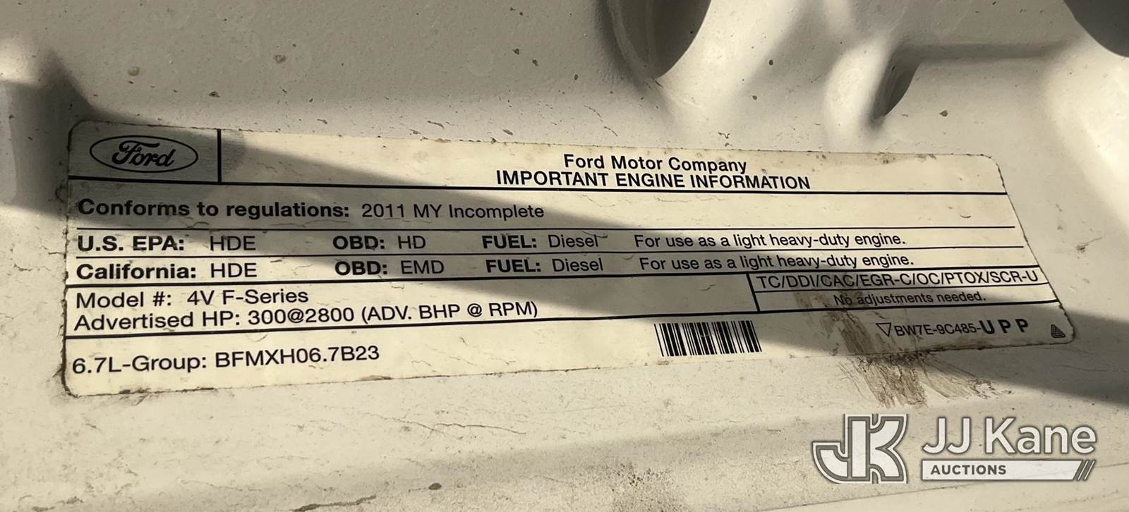 2011 Ford F-450 SD Dump Truck, 6.7L Diesel Auto, A/C, with 3 yard dump, tow package, winch, (076,446 miles) (Runs & Moves) (Dump Operates) This is a Titled Item NOTE: This unit is being sold AS IS/WHERE IS via Timed Auction and is located in Jurupa Valley, CA. Inspection & preview days for this unit are the 2 business days prior to the first day of items closing for this auction, item is located at 4510 Muth Way Jurupa Valley, CA 92509 and hours of operations are 8a-4p. For pre-sale questions, please contact please contact Office Staff @ (310) 353-7140. Dealer License Number 45696. (Buyer is responsible for removal. Assistance by consignor or JJ Kane Auctions is not assured.)