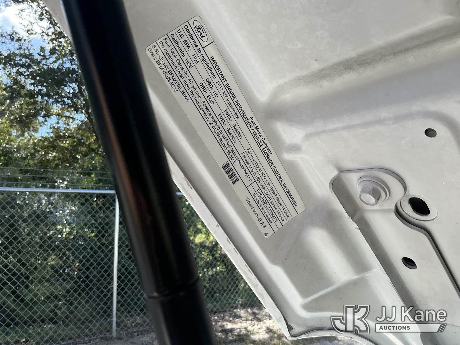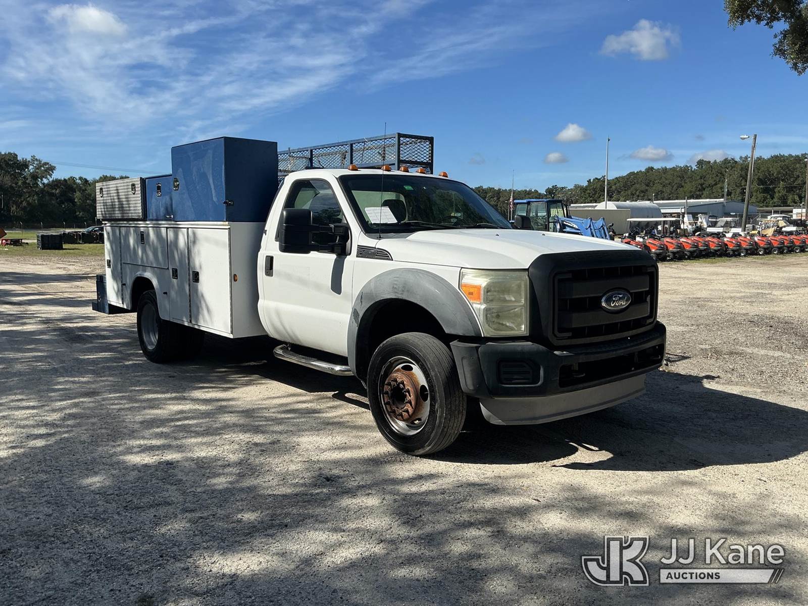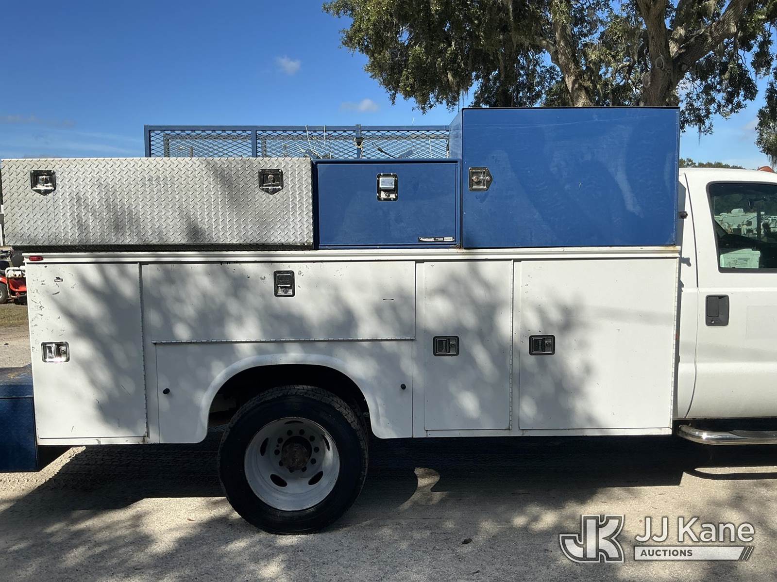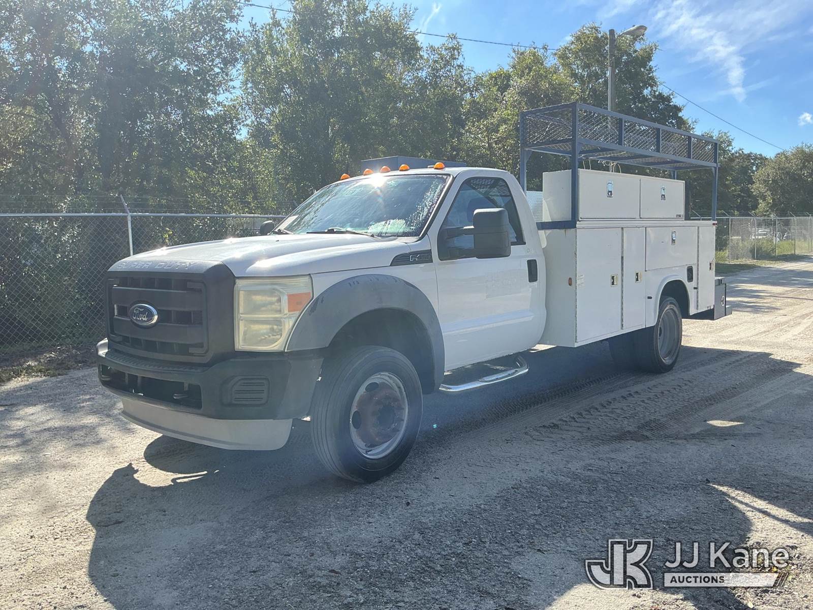 2011 Ford F-450 SD Regular Cab DRW 2WD Service Truck, 6.8L V10 SOHC 30V Auto, RWD, Gas, A/C, (140,436 miles) (Runs & Moves) (Tire Side Wall Damage, Jump To Start)(FL Residents Purchasing Titled Items - tax, title & registration fees will be collected at the maximum rate of $400.00 under 25,999 and $800.00 for Over 26,000 and $250.00 trailers - Proof of insurance is mandatory; Out of State Residents Purchasing Title Items - tax will be collected based upon your state rate.) (Reads 9,352 hours) This is a Titled Item NOTE: This unit is being sold AS IS/WHERE IS via Timed Auction and is located in Thonotosassa, FL. Inspection & preview days for this unit are the 2 business days prior to the first day of items closing for this auction, item is located at 11720 N US 301 Thonotosassa, Fl 33592 and hours of operations are 8a-4p. For pre-sale questions, please contact Office Staff @ (813) 986-2485. (Buyer is responsible for removal. Assistance by consignor or JJ Kane Auctioneers is not assured.)