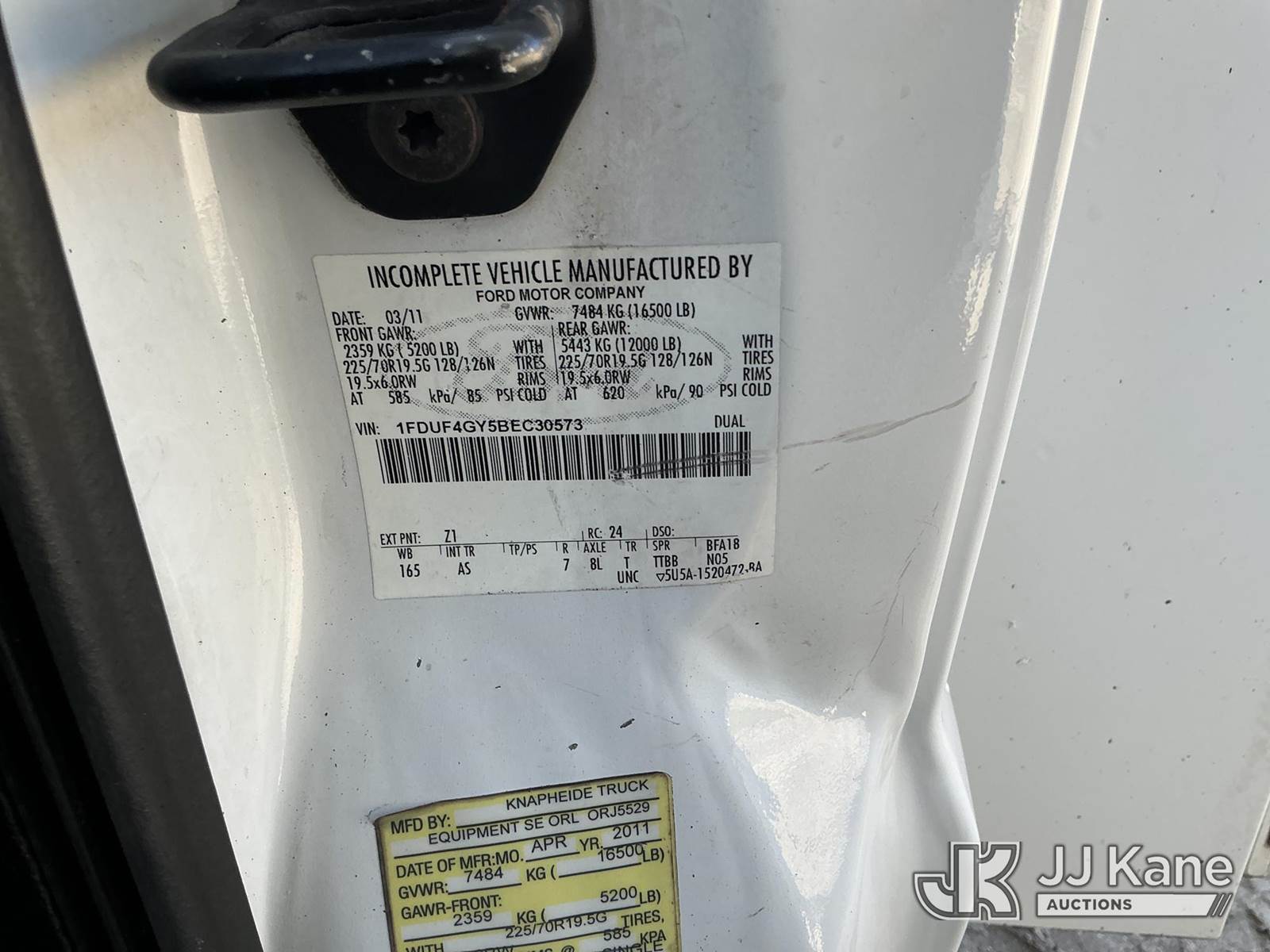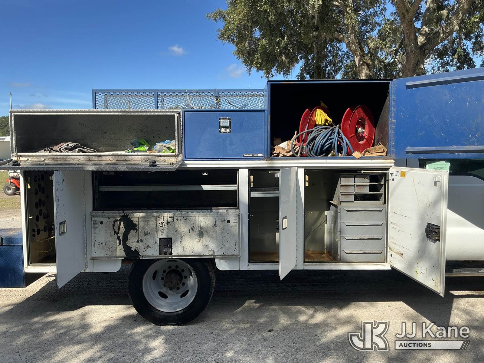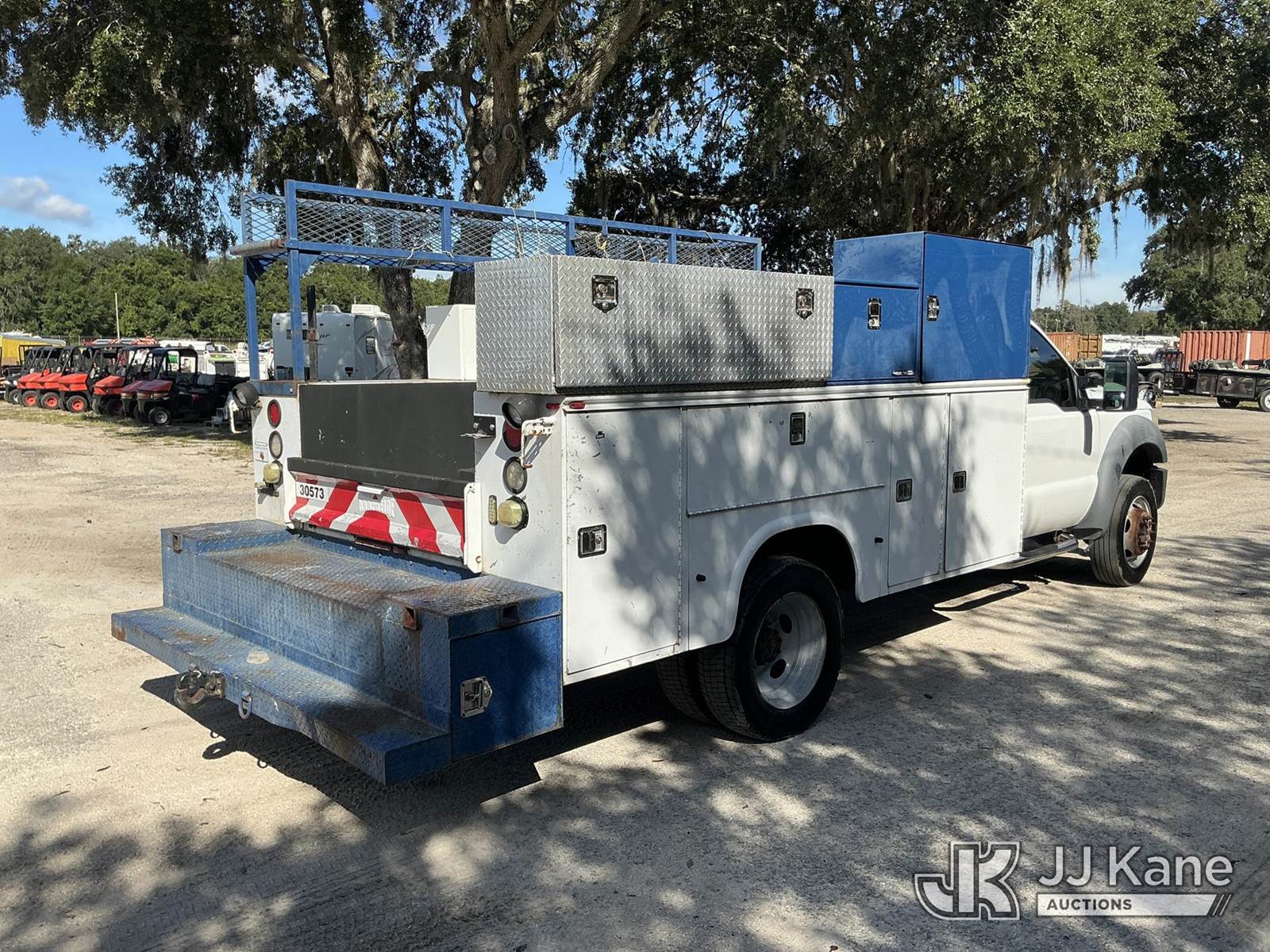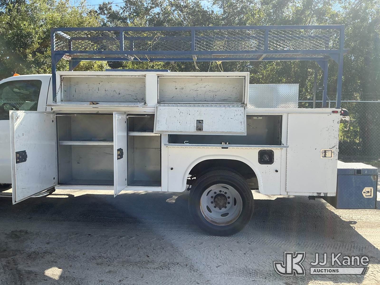 2011 Ford F-450 SD Regular Cab DRW 2WD Service Truck, 6.8L V10 SOHC 30V Auto, RWD, Gas, A/C, (140,436 miles) (Runs & Moves) (Tire Side Wall Damage, Jump To Start)(FL Residents Purchasing Titled Items - tax, title & registration fees will be collected at the maximum rate of $400.00 under 25,999 and $800.00 for Over 26,000 and $250.00 trailers - Proof of insurance is mandatory; Out of State Residents Purchasing Title Items - tax will be collected based upon your state rate.) (Reads 9,352 hours) This is a Titled Item NOTE: This unit is being sold AS IS/WHERE IS via Timed Auction and is located in Thonotosassa, FL. Inspection & preview days for this unit are the 2 business days prior to the first day of items closing for this auction, item is located at 11720 N US 301 Thonotosassa, Fl 33592 and hours of operations are 8a-4p. For pre-sale questions, please contact Office Staff @ (813) 986-2485. (Buyer is responsible for removal. Assistance by consignor or JJ Kane Auctioneers is not assured.)