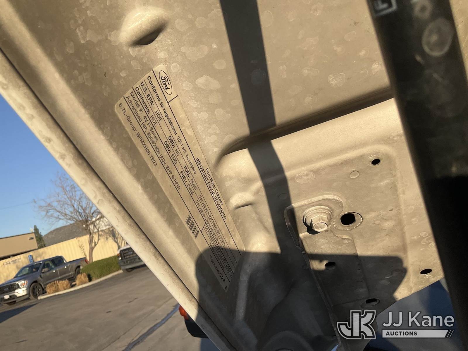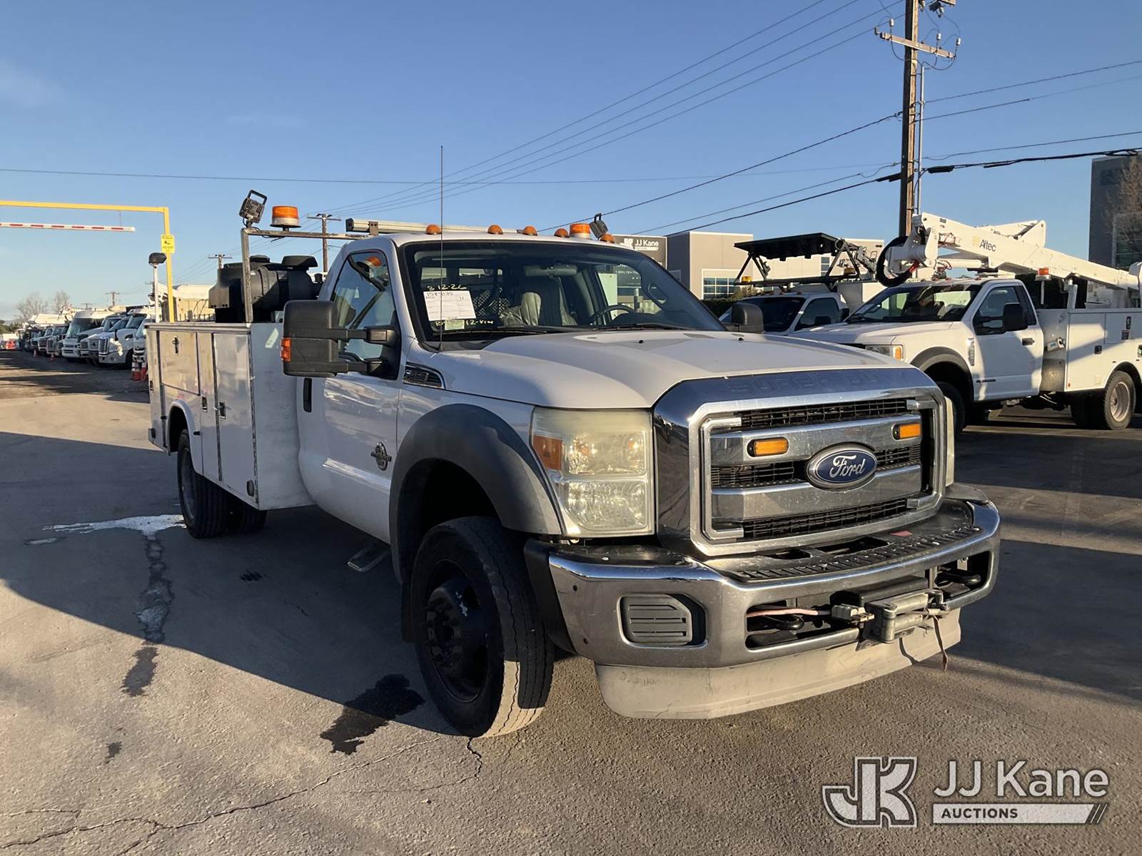 2011 Ford F-450 SD Regular Cab DRW 2WD Service Truck, s/n 1FDUF4GT9BEB90812, 6.7L V8 OHV 16V DIESEL Auto, with Fuel Cell, Lift Gate, Tow Package, Side Steps, front winch, (189,994 miles) (Runs, Moves, & Lift Gate Operates ) May be subject to ARB Regulations This is a Titled Item NOTE: This unit is being sold AS IS/WHERE IS via Timed Auction and is located in Jurupa Valley, CA. Inspection & preview days for this unit are the 2 business days prior to the first day of items closing for this auction, item is located at 4510 Muth Way Jurupa Valley, CA 92509 and hours of operations are 8a-4p. For pre-sale questions, please contact please contact Office Staff @ (310) 353-7140. Dealer License Number 45696. (Buyer is responsible for removal. Assistance by consignor or JJ Kane Auctions is not assured.)