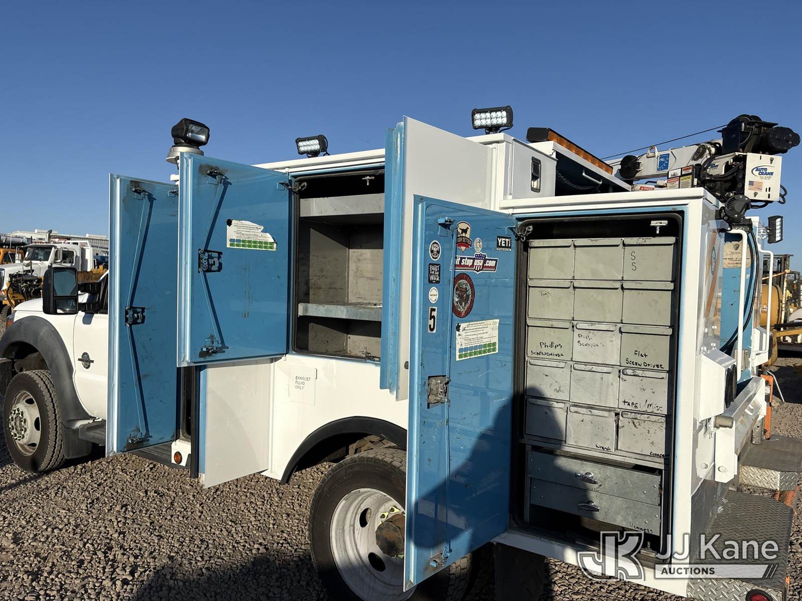 2011 Ford F-450 SD Regular Cab DRW 4WD Mechanics Service Truck, s/n 1FDUF4HT7BEC55056, 6.7L V8 OHV 16V DIESEL, Auto, A/C, (138,349 miles) (Runs & Moves, Crane Operates) (Reads 9,170 hours) May be subject to ARB Regulations This is a Titled Item NOTE: This unit is being sold AS IS/WHERE IS via Timed Auction and is located in Dixon, CA. Inspection & preview days for this unit are the 2 business days prior to the first day of items closing for this auction, item is located at 8668 Sparling Ln Dixon, CA 95620 and hours of operations are 8a-4p. For pre-sale questions, please contact JJ Kane Staff at (707) 678-8060 (dixon@jjkane.com). Dealer License Number 45696. (Buyer is responsible for removal. Assistance by consignor or JJ Kane Auctions is not assured.)