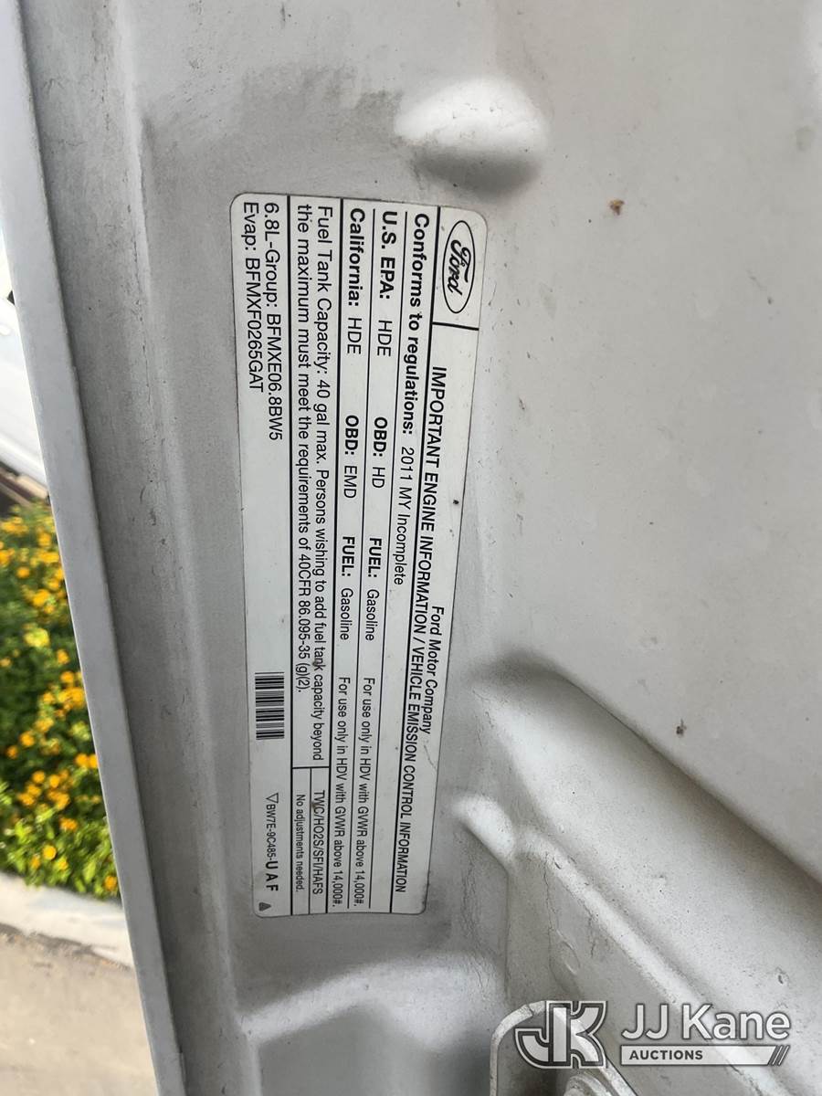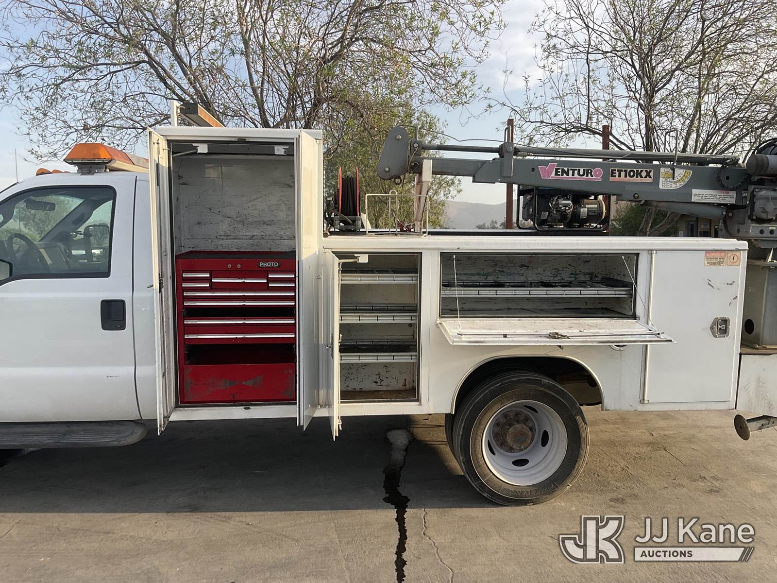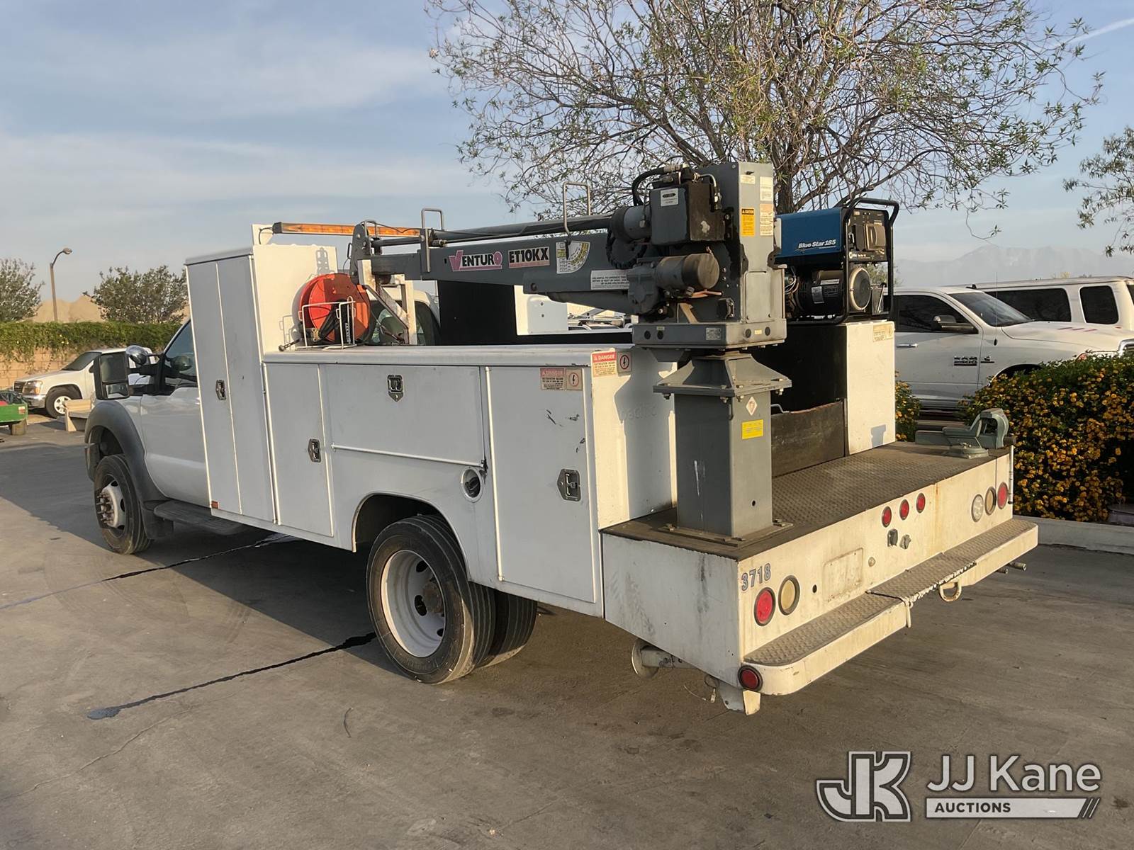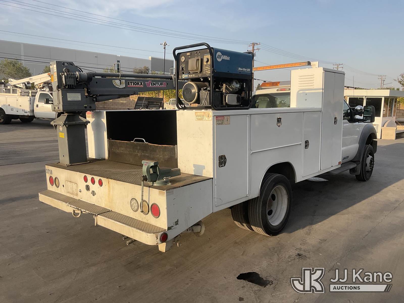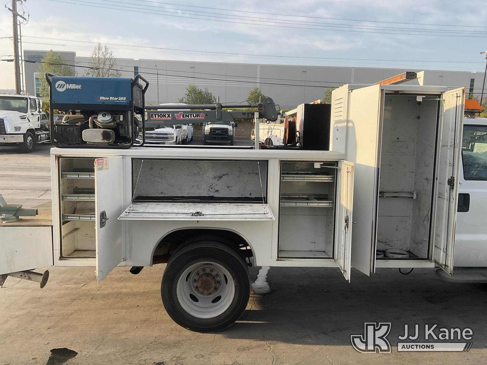2011 Ford F-550 Mechanics Service Truck, 10-cyl gas, Auto, A/C, with Tow Package, Venturo Crane, Miller Welder Blue Star 185, (095,668 miles) (Runs & Moves) (Crane Operates, Crane Control In Guard Shack) This is a Titled Item NOTE: This unit is being sold AS IS/WHERE IS via Timed Auction and is located in Jurupa Valley, CA. Inspection & preview days for this unit are the 2 business days prior to the first day of items closing for this auction, item is located at 4510 Muth Way Jurupa Valley, CA 92509 and hours of operations are 8a-4p. For pre-sale questions, please contact please contact Office Staff @ (310) 353-7140. Dealer License Number 45696. (Buyer is responsible for removal. Assistance by consignor or JJ Kane Auctions is not assured.)