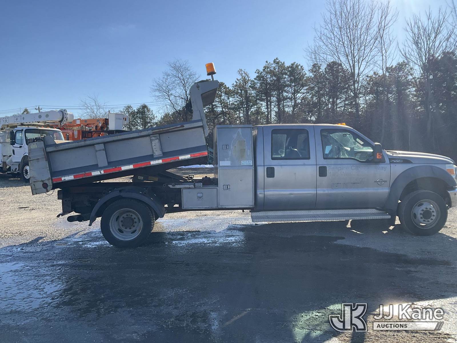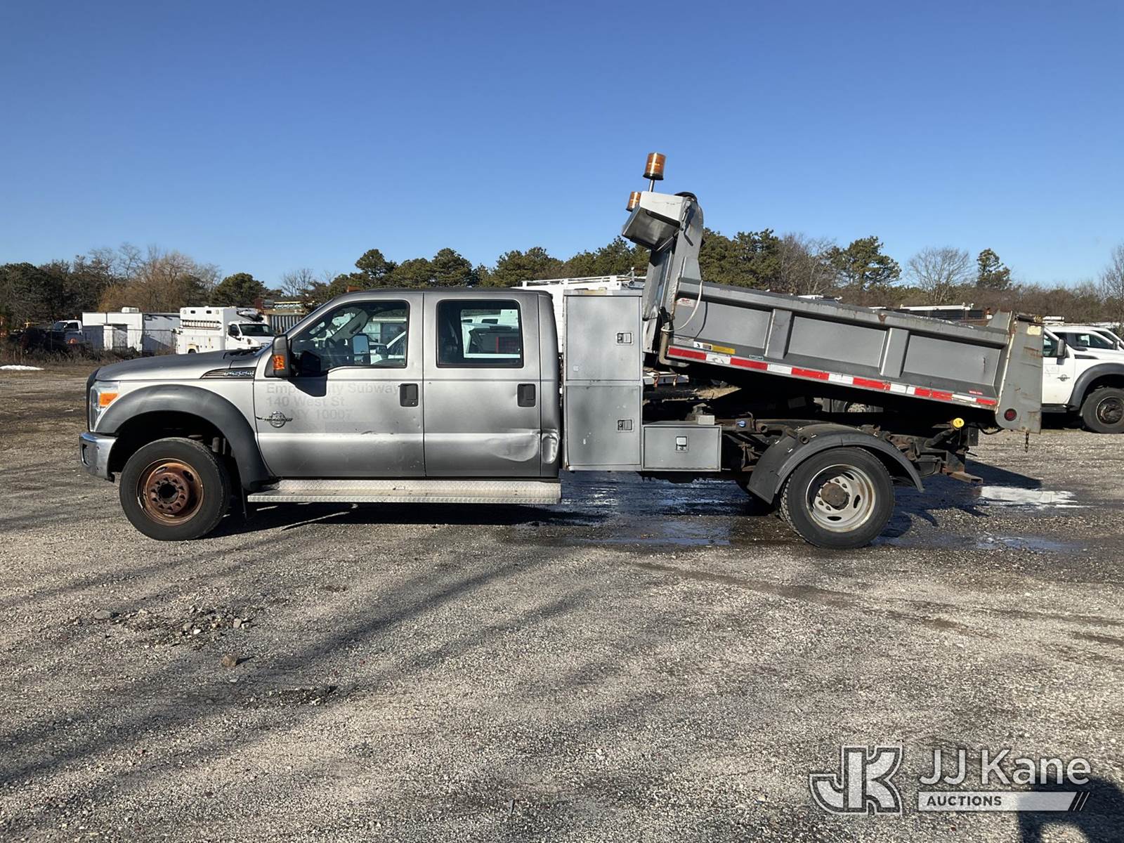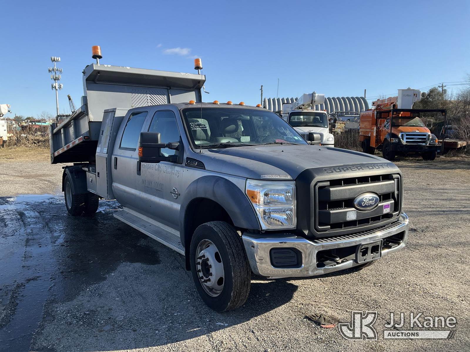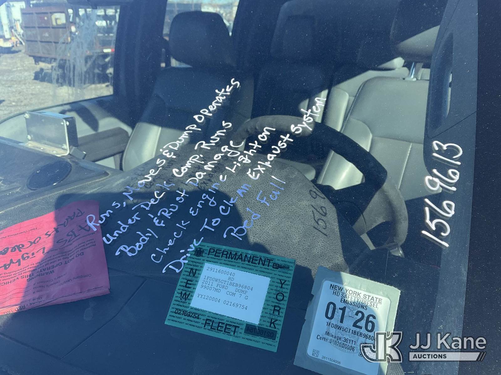 2011 Ford F550 2WD Crew-Cab Dump Truck, 6.7L, diesel Auto, A/C, with 2-3 yd body, Under Deck Air Compressor ( Runs ), (38,572 miles) (Runs, Moves & Dump Operates, Body & Rust Damage, Check Engine Light On,Drive To Clean Exhaust System, Bed Full (Removal is by Appointment Only, Buyer MUST make an appointment prior to picking up, Buyer/Transporter Must have PAID IN FULL RELEASE. No onsite assistance available, Please Come prepared.) This is a Titled Item NOTE: This unit is being sold AS IS/WHERE IS via Timed Auction and is located in Bellport, NY. Inspection & preview days for this unit are by appointment only; please contact us at contact@jjkane.com or 84-Go-JJKane for more details. (Buyer is responsible for removal. Assistance by consignor or JJ Kane Auctions is not assured.)