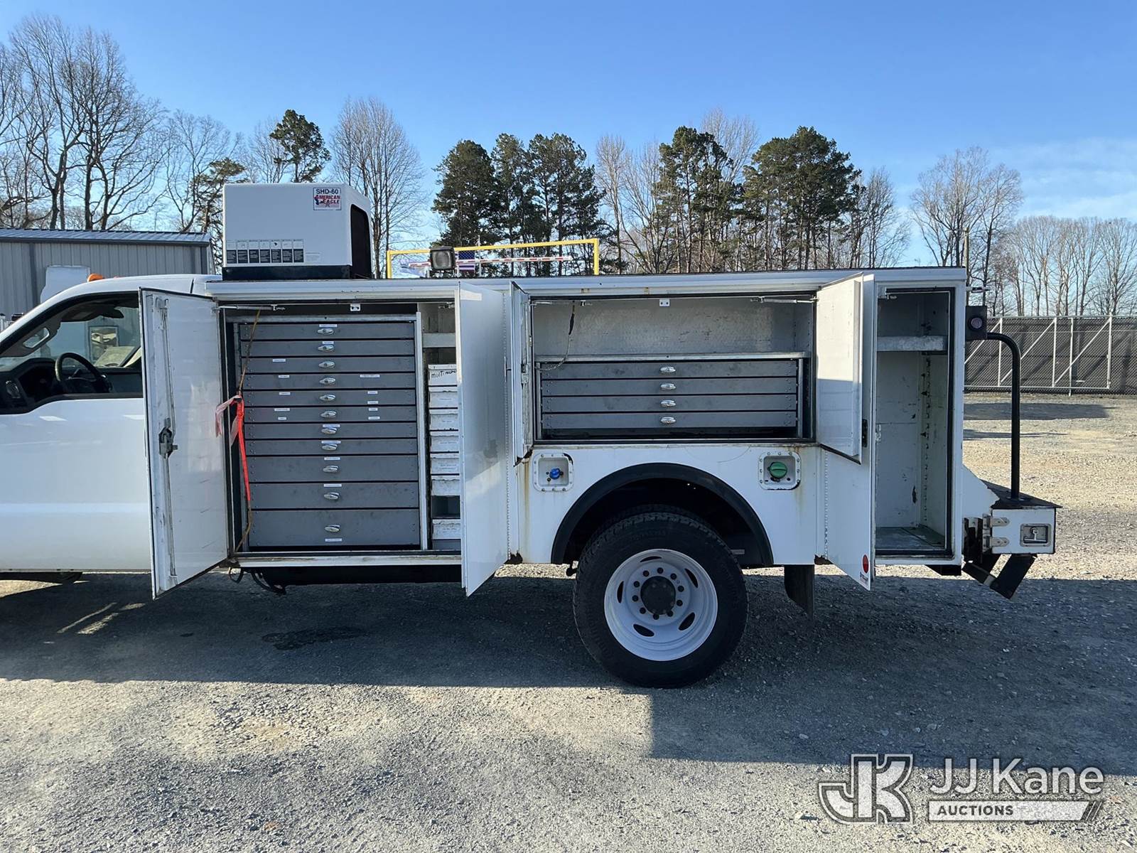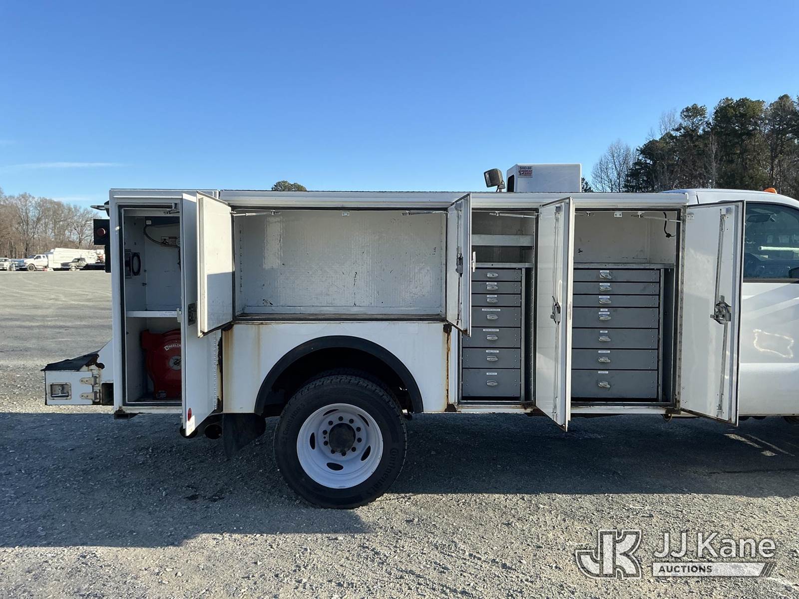 2011 Ford F550 Service Truck, 6.7L diesel, Auto, A/C, with hyd pump, hyd air compressor w/ hose reel, (193,768 miles) (Runs & Moves) (Check Engine Light On ) This is a Titled Item NOTE: This unit is being sold AS IS/WHERE IS via Timed Auction and is located in China Grove, NC. Inspection & preview days for this unit are the 2 business days prior to the first day of items closing for this auction, item is located at 820 E NC Hwy 152 China Grove, NC 28023 and hours of operations are 8a-4p. For pre-sale questions, please contact Office Staff @ (704) 674-1113. (Buyer is responsible for removal. Assistance by consignor or JJ Kane Auctions is not assured.)