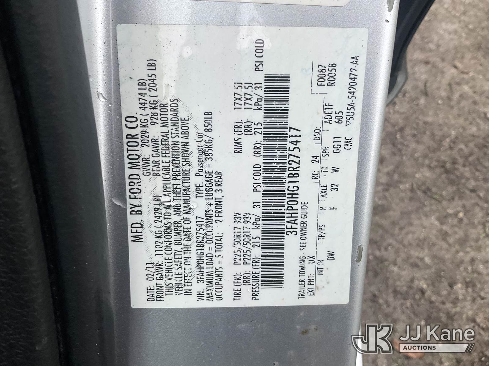 2011 Ford Fusion 4-Door Sedan, 6-cyl gas, FWD, Auto, A/C, (122,334 miles) State of FL Unit (Runs & Moves) (Jump To Start) (FL Residents Purchasing Titled Items – tax, title & registration fees will be collected at the maximum rate of $400.00 under 25,999 and $800.00 for Over 26,000 and $250.00 trailers – Proof of insurance is mandatory; Out of State Residents Purchasing Title Items – tax will be collected based upon your state rate.) (Branded Title - Police Vehicle) This is a Titled Item NOTE: This unit is being sold AS IS/WHERE IS via Timed Auction and is located in Thonotosassa, FL. Inspection & preview days for this unit are the 2 business days prior to the first day of items closing for this auction, item is located at 11720 N US 301 Thonotosassa, Fl 33592 and hours of operations are 8a-4p. For pre-sale questions, please contact Office Staff @ (813) 986-2485. (Buyer is responsible for removal. Assistance by consignor or JJ Kane Auctions is not assured.)