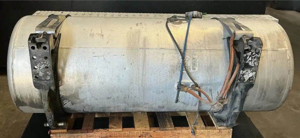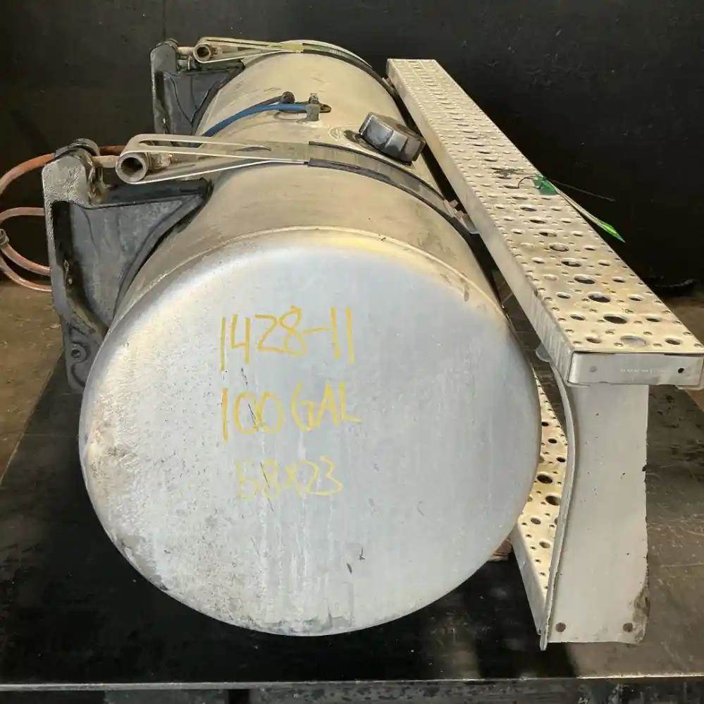 Driver Side Fuel Tank, 58"L x 23" Dia, 100 Gallon Capacity, w/ Steps & Brackets. Bottom Step Bent. P/N A03-36074-180.