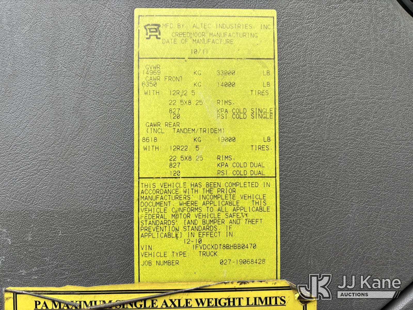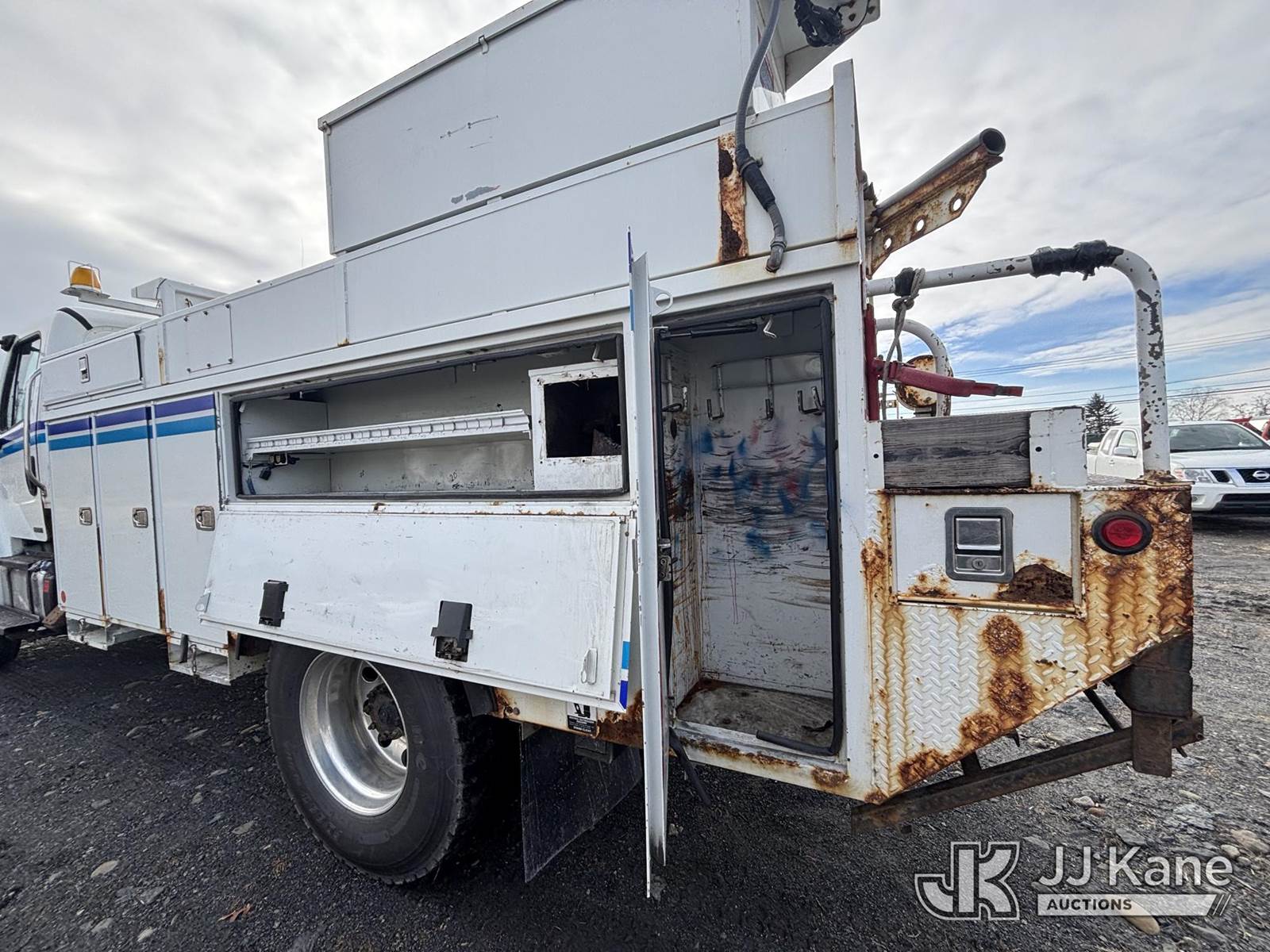 2011 Freightliner M2 106 4x4 Utility Truck, 6.7L L6 Diesel, Auto, A/C, (109,146 miles) (Runs & Moves, Boom Unit Removed, Outriggers Removed, Other Components May Be Removed, Stop Engine Light On, ABS Light On, Body & Rust Damage) (Reads 14,289 hours) This is a Titled Item NOTE: This unit is being sold AS IS/WHERE IS via Timed Auction and is located in Plains, PA. Inspection & preview days for this unit are the 2 business days prior to the first day of items closing for this auction, item is located at 250 Laird St Plains, PA 18705 and hours of operations are 8a-4p.For pre-sale questions, please contact Mary Darlington @ (570) 899-4930 or Mary.Darlington@JJKane.com. (Buyer is responsible for removal. Assistance by consignor or JJ Kane Auctions is not assured.)