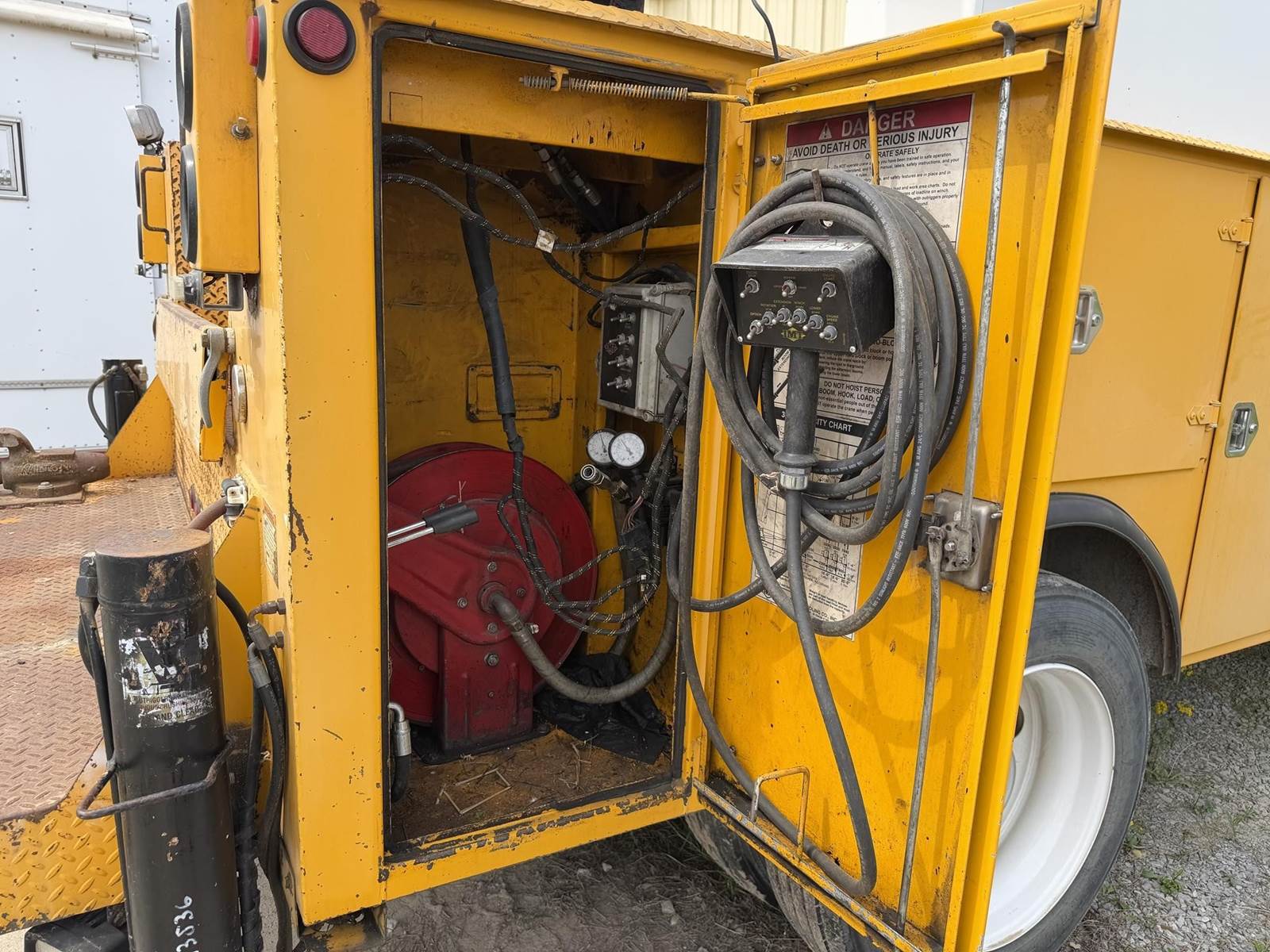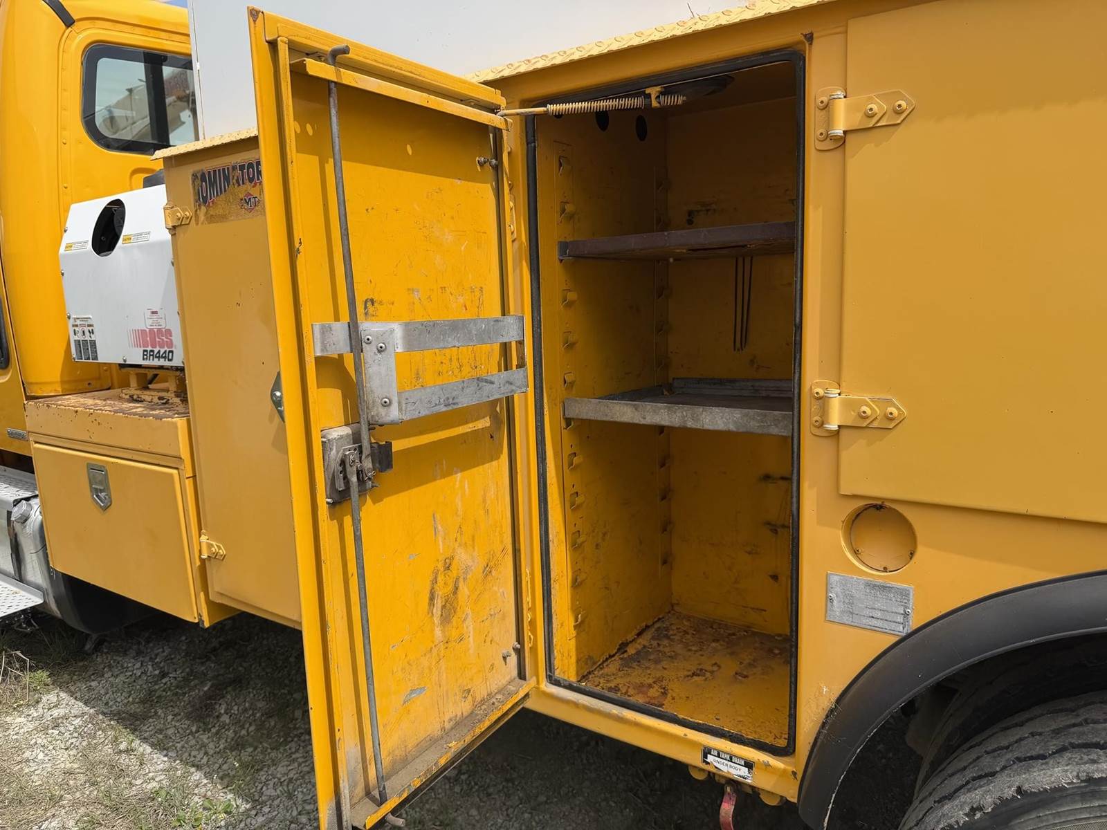 NICE TRUCK, RUNS EXCELLENT, WELL MAINTAINED, 15 FT IMT TOOL BODY, IMT 3816 CRANE WITH REMOTE, BOSS 440 HYDRAULIC AIR COMPRESSOR, AIR HOSE REEL!