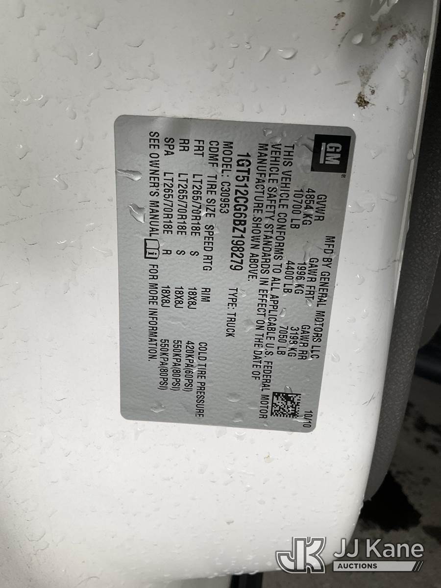 2011 GMC Sierra 3500HD Extended-Cab Pickup Truck, 8-cyl gas, 6-Speed Automatic, A/C, with Tow package, lift gate, (204,375 miles) (Runs & Moves) (Liftgate Operates) This is a Titled Item NOTE: This unit is being sold AS IS/WHERE IS via Timed Auction and is located in Jurupa Valley, CA. Inspection & preview days for this unit are the 2 business days prior to the first day of items closing for this auction, item is located at 4510 Muth Way Jurupa Valley, CA 92509 and hours of operations are 8a-4p. For pre-sale questions, please contact please contact Office Staff @ (310) 353-7140. Dealer License Number 45696. (Buyer is responsible for removal. Assistance by consignor or JJ Kane Auctions is not assured.)