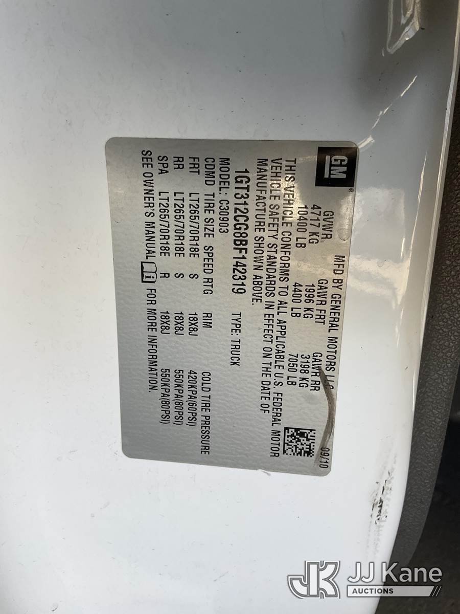 2011 GMC Sierra 3500HD Pickup Truck, 8-cyl gas, 6-Speed Automatic, A/C, with Tow package, (144,422 miles) (Runs & Moves) This is a Titled Item NOTE: This unit is being sold AS IS/WHERE IS via Timed Auction and is located in Jurupa Valley, CA. Inspection & preview days for this unit are the 2 business days prior to the first day of items closing for this auction, item is located at 4510 Muth Way Jurupa Valley, CA 92509 and hours of operations are 8a-4p. For pre-sale questions, please contact please contact Office Staff @ (310) 353-7140. Dealer License Number 45696. (Buyer is responsible for removal. Assistance by consignor or JJ Kane Auctions is not assured.)