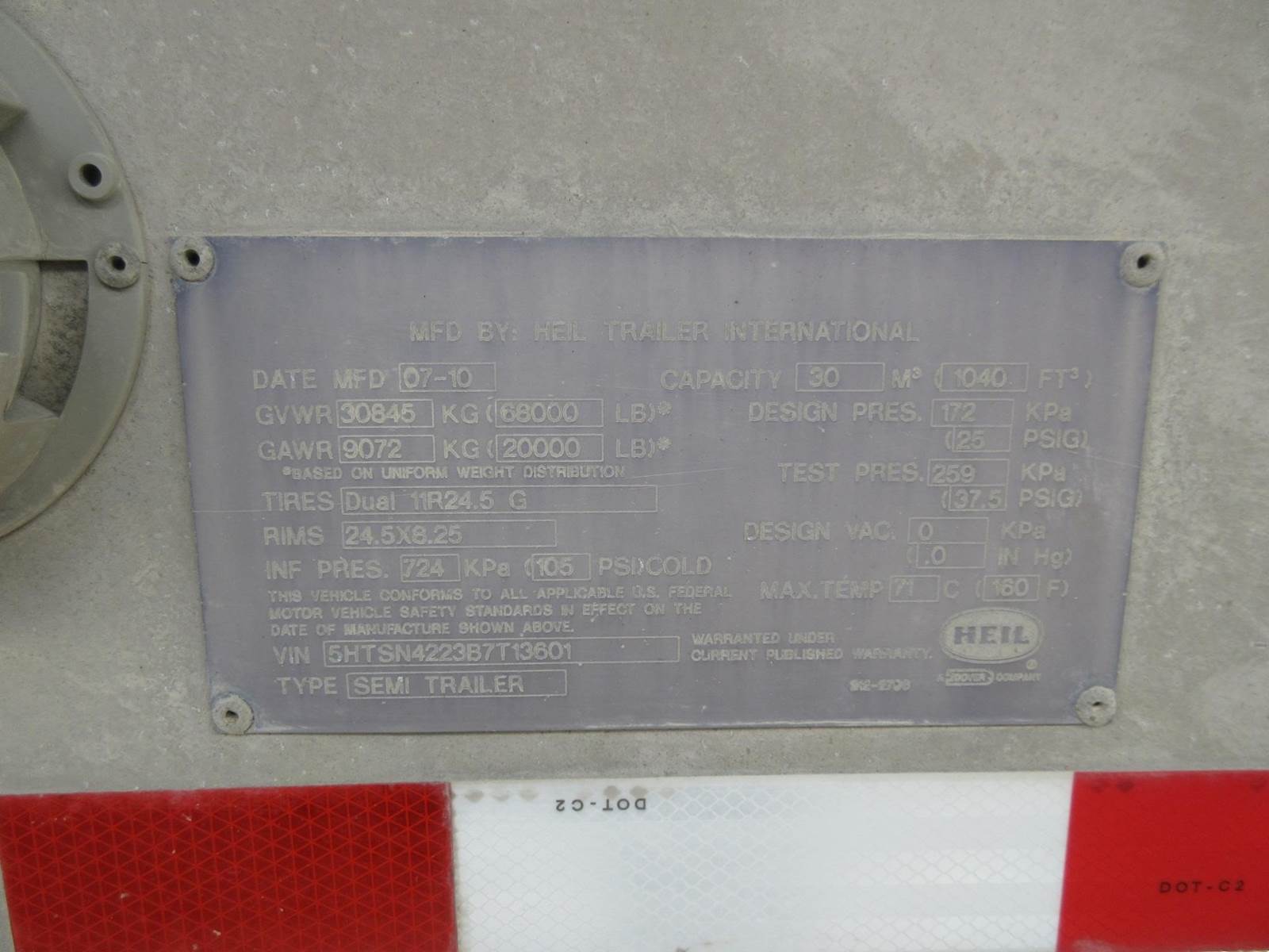 2011 Heil pneumatic, air ride, 1000 cu ft., has no piping under hoppers, straight dump loading, drum brakes