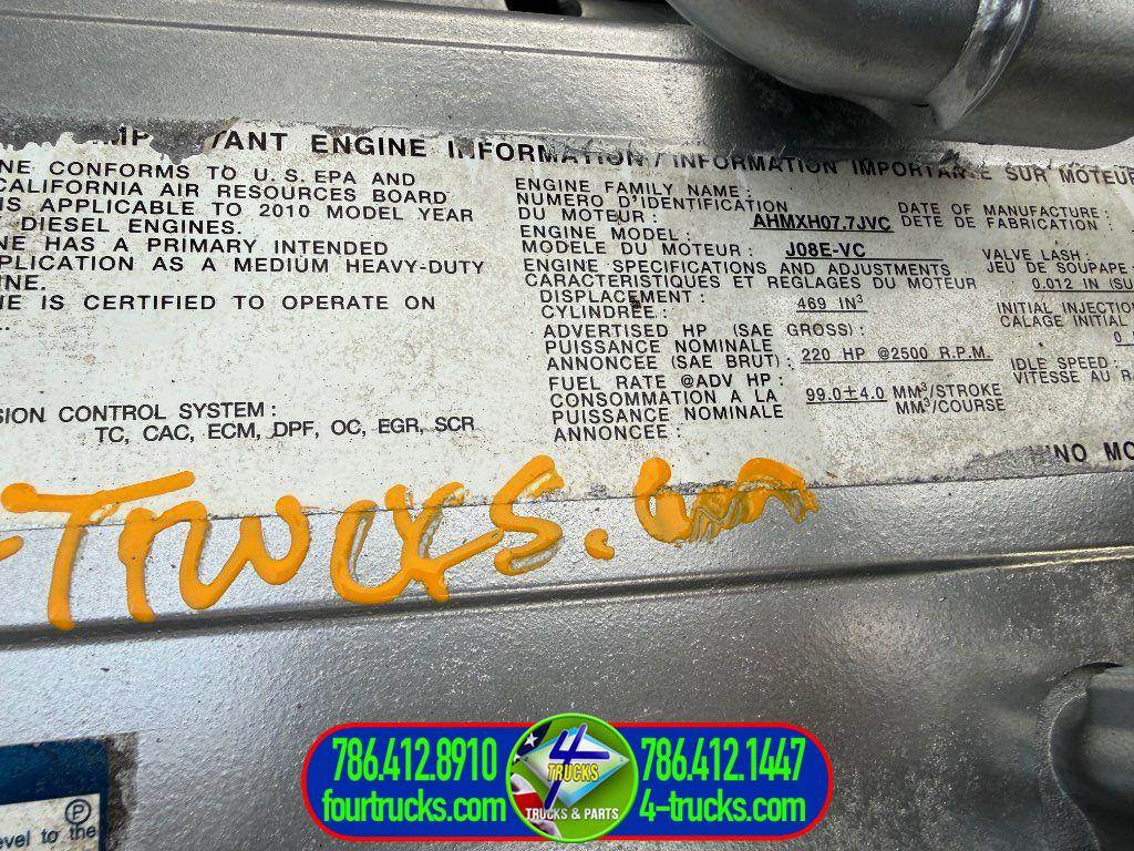 USED 2011 HINO J08E-VC ENGINE, EGR VALVE, 6 CYLINDER TURBO DIESEL, 220HP, COMPLETE, INSPECTED AND TESTED RUNNING GOOD ENGINE, ALSO MANY HINO PARTS IN STOCK