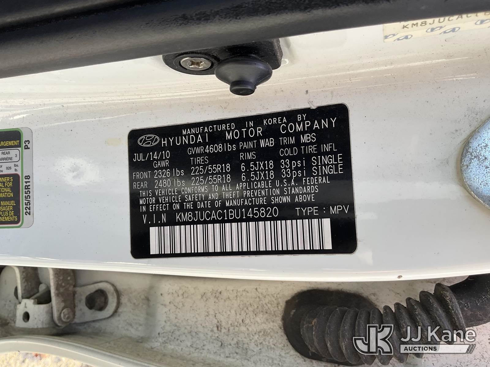 2011 Hyundai Tucson 4-Door Sport Utility Vehicle, s/n KM8JUCAC1BU145820, 2.4L L4 DOHC 16V 6-Speed Automatic, 4wd, Gas, A/C, True Mileage Unknown Abandoned Vehicles Have Been Sitting For Extended Periods of Time and Must Be Towed From The Auction Yard. No Loading Assistance Available. Successful Bidders Must Provide Their Own Tools To Be Prepared For Dead Batteries, Flat Tires & Means For Loading Non-Running Vehicles (NO KEY - Conditions Unknown - No Title; AS IS; Vehicle Abandoned on Massachusetts Port Authority's Property. Massachusetts residents can apply for title using Bill of Sale per Mass Act of 1963 Ch. 543. The Massachusetts Port Authority warrants title to the Buyer only against liens, encumbrances and claims arising by or through the Massachusetts Port Authority, and not otherwise) (Residents of other states must check with their state department of motor vehicles regarding the ability to obtain a vehicle title in their state. JJ Kane Auctioneers and the Massachusetts Port Authority make no representations or assurances that non-Massachusetts residents will be able to obtain a vehicle title) (Members or employees of the Authority, their immediate family members, or agents, are prohibited from bidding.) NOTE: This unit is being sold AS IS/WHERE IS via Timed Auction and is located in Shrewsbury, MA. Inspection & preview days for this unit are the 2 business days prior to the first day of items closing for this auction, item is located at 11 Fortune Blvd Shrewsbury, MA 01545 and hours of operations are 8a-4p. For pre-sale questions, please contact Rob Gifford @ (508) 864-4126. (Buyer is responsible for removal. Assistance by consignor or JJ Kane Auctioneers is not assured.)