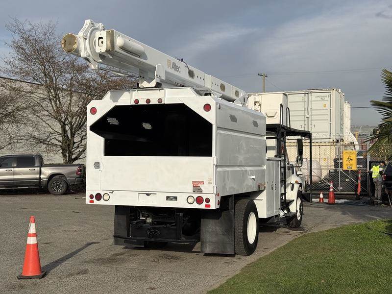 This 2011 International 4300 bucket chipper truck is powered by a 7.6L inline-6 paired with an Eaton Fuller 6-speed manual transmission and rear-wheel drive, and is equipped with hydraulic brakes. It features an Altec LRV56 bucket with a maximum platform height of 56 feet and a 350 lb platform capacity, along with outriggers and a rear hopper. The dump body measures approximately 10 feet long, 6 feet 6 inches wide, and 4 feet 9 inches high, while overall vehicle dimensions are about 30 feet long, 8 feet 1 inch wide, and 12 feet 1 inch high. Additional equipment includes cruise control, air conditioning, AM/FM radio, and a white exterior with a grey vinyl interior, making it well suited for arborist, utility, or fleet operations. This item is currently OFFSITE. You must register an appointment with our office to schedule an offsite viewing. Appointments must be made a minimum of one business day in advance (and as defined by the days that Repo.com is open for business) before your appointment can be scheduled and confirmed. We may, at our own discretion, instead opt to transport smaller items to Repo.com's main yard for viewing purposes. $83,790.00 plus $375 processing fee, $84,165.00 total payment obligation before taxes. Listing report, warranty, contract commitment cancellation fee, financing available on approved credit (some limitations and exceptions may apply). All above specifications and information is considered to be accurate but is not guaranteed and no opinion or advice is given as to whether this item should be purchased. We do not allow test drives due to theft, fraud, acts of vandalism and undetectable impaired driving. Instead we provide the following benefits: Complimentary Warranty (with options to extend), Limited Money Back Satisfaction Guarantee on Fully Completed Contracts, Contract Commitment Cancellation, and an Open-Ended Sell-Back Option. Ask seller for details or call to confirm listing availability.