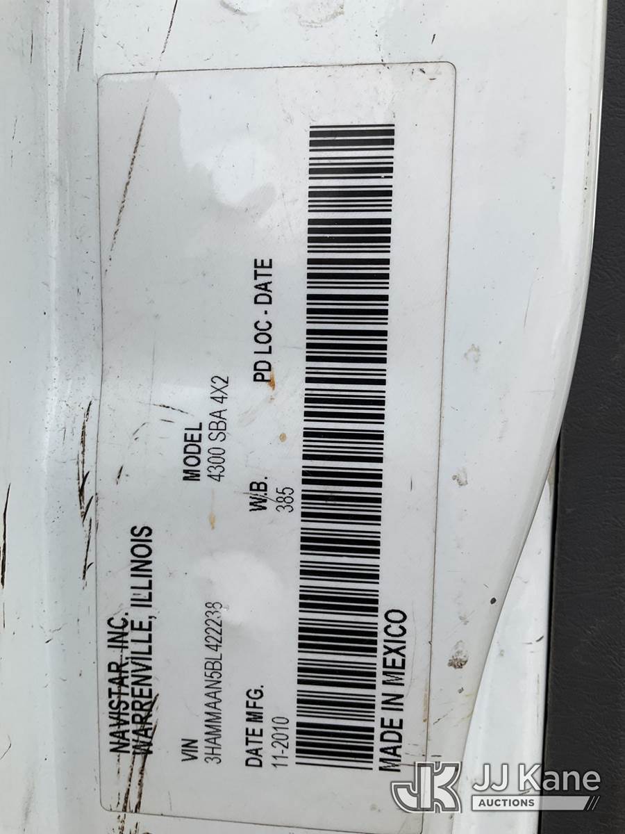 2011 International DuraStar 4300 Dump Truck, 7.6L L6 DIESEL 4X2, DIESEL, Auto, (78,655 miles) (Runs, Moves, Dump Operates ) (Reads 6,235 hours) This is a Titled Item NOTE: This unit is being sold AS IS/WHERE IS via Timed Auction and is located in South Beloit, IL. Inspection & preview days for this unit are the 2 business days prior to the first day of items closing for this auction, item is located at 14354 Dearborn Ave South Beloit, IL and hours of operations are 8a-4p. For pre-sale questions, please contact Derek Eklund at (608) 904-0618 or (derek.eklund@jjkane.com). (Buyer is responsible for removal. Assistance by consignor or JJ Kane Auctions is not assured.)