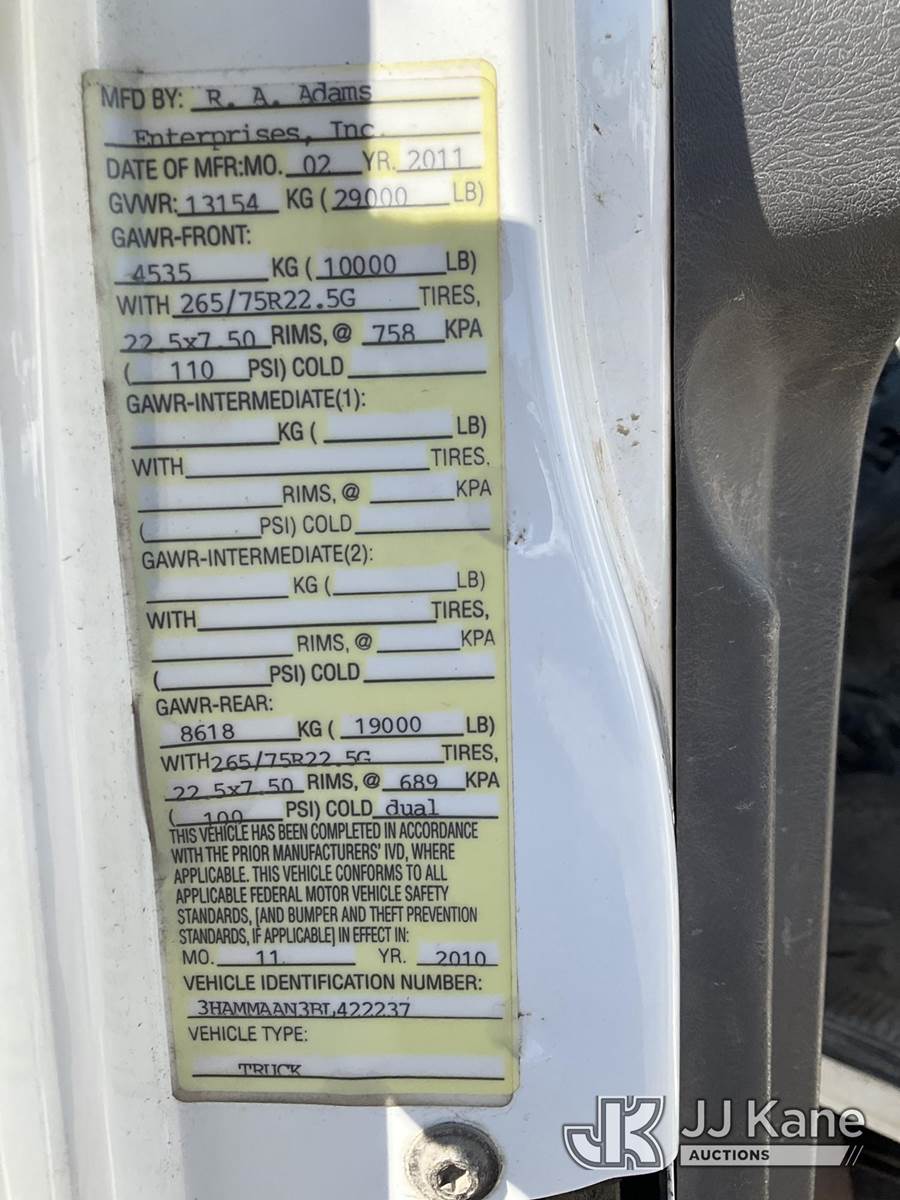 2011 International DuraStar 4300 Dump Truck, 7.6L L6 DIESEL 4X2, Auto, (61,444 miles) (Runs & Moves) (Dump Operates) (Reads 6,100 hours) This is a Titled Item NOTE: This unit is being sold AS IS/WHERE IS via Timed Auction and is located in South Beloit, IL. Inspection & preview days for this unit are the 2 business days prior to the first day of items closing for this auction, item is located at 14354 Dearborn Ave South Beloit, IL and hours of operations are 8a-4p. For pre-sale questions, please contact Derek Eklund at (608) 904-0618 or (derek.eklund@jjkane.com). (Buyer is responsible for removal. Assistance by consignor or JJ Kane Auctions is not assured.)
