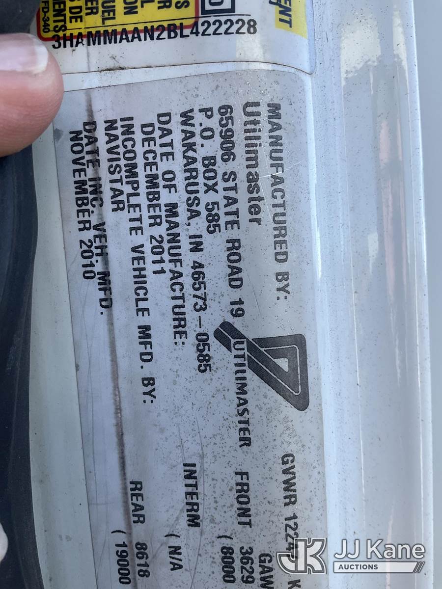 2011 International DuraStar 4300 Enclosed Utility Truck, 7.6L diesel, 4X2, Auto, A/C, (89,823 miles) (Not Running, Condition Unknown, Cranks)(Seller States: Low Engine Compression) This is a Titled Item NOTE: This unit is being sold AS IS/WHERE IS via Timed Auction and is located in South Beloit, IL. Inspection & preview days for this unit are the 2 business days prior to the first day of items closing for this auction, item is located at 14354 Dearborn Ave South Beloit, IL and hours of operations are 8a-4p. For pre-sale questions, please contact Derek Eklund at (608) 904-0618 or (derek.eklund@jjkane.com). (Buyer is responsible for removal. Assistance by consignor or JJ Kane Auctions is not assured.)