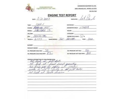 International MAXXFORCE13, 1,174,029 Odometer Miles Oil Leak at Fill Tube and Fuel Pump Mounting, Air Drier Popping off at 120 PSI, Signs of Water in Oil