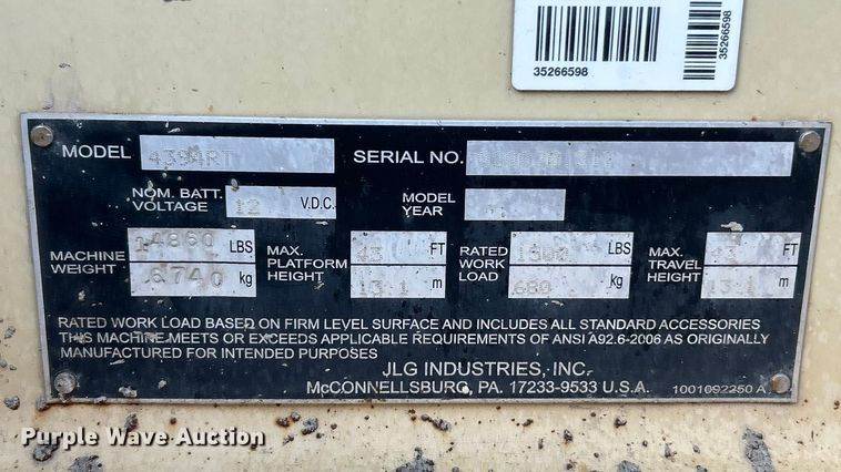 2011 JLG 4394RT Scissor Lift