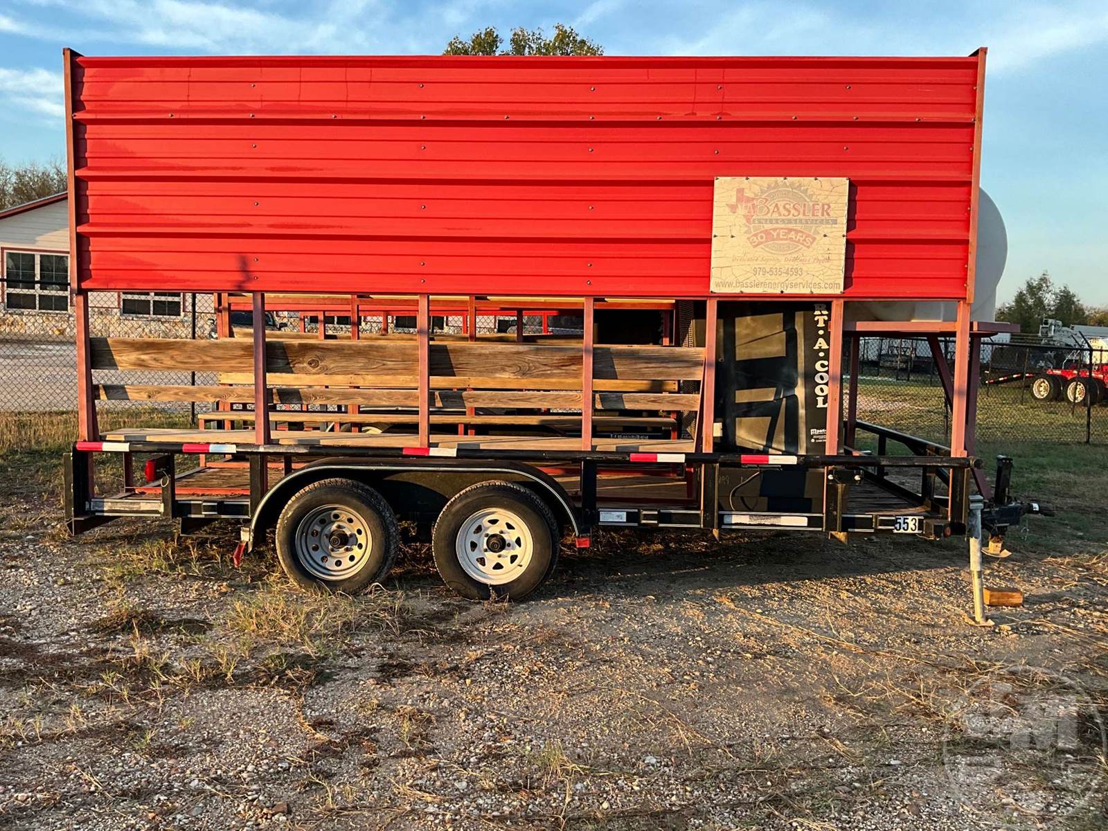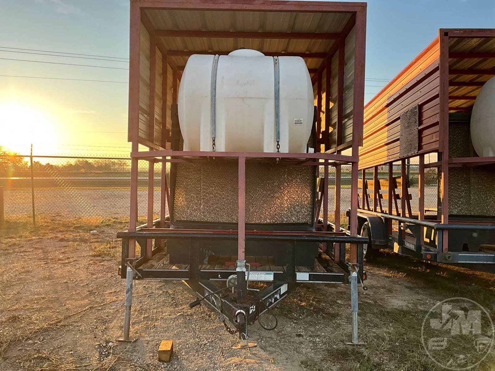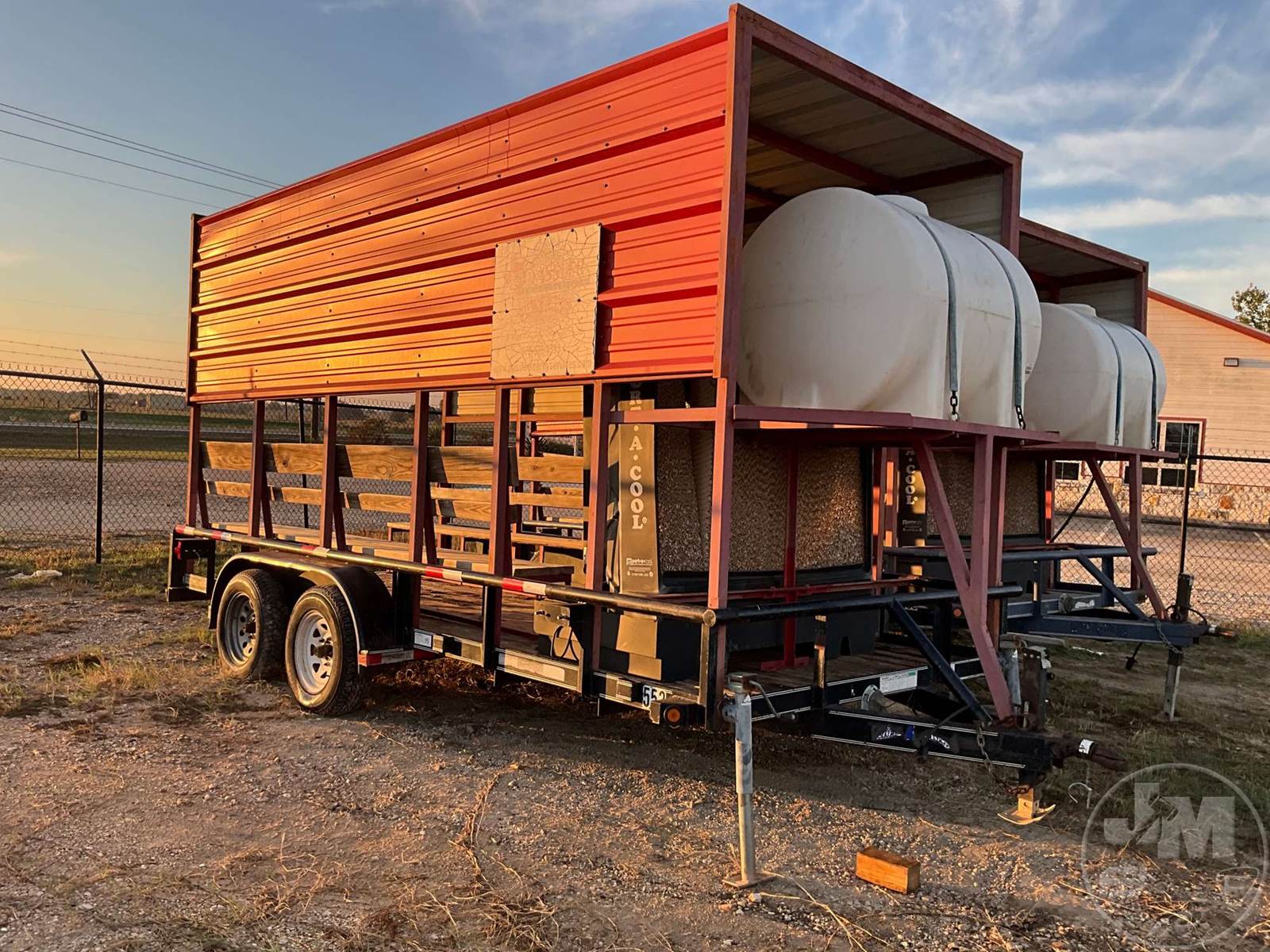 COOLING TRAILER 7'X16', 2 AXLE, REAR GATE, WOOD DECKING, 2-5/16" BALL, 205/75R15 TIRES, PORTACOOL, 225 GAL. WATER TANK, BENCHES, ENCLOSURE, ***JACK DOES NOT WORK***DILLEY