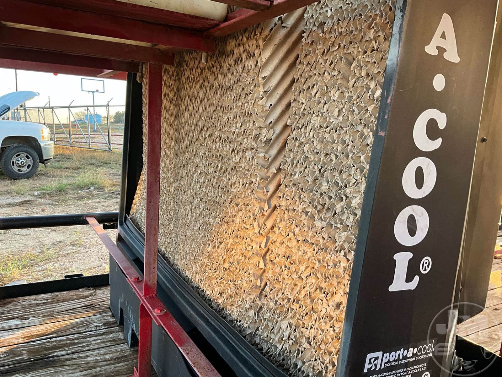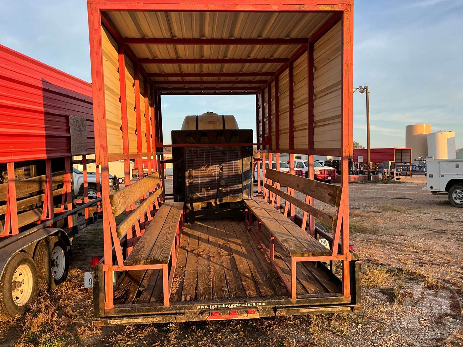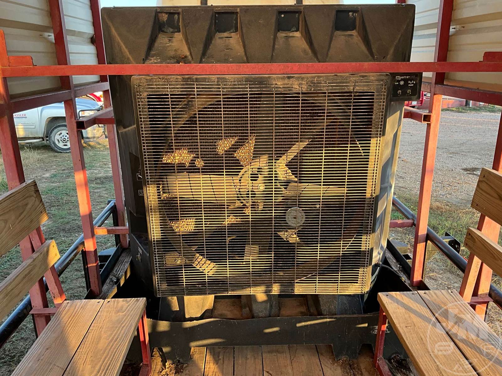 COOLING TRAILER 7'X16', 2 AXLE, REAR GATE, WOOD DECKING, 2-5/16" BALL, 205/75R15 TIRES, PORTACOOL, 225 GAL. WATER TANK, BENCHES, ENCLOSURE, ***JACK DOES NOT WORK***DILLEY