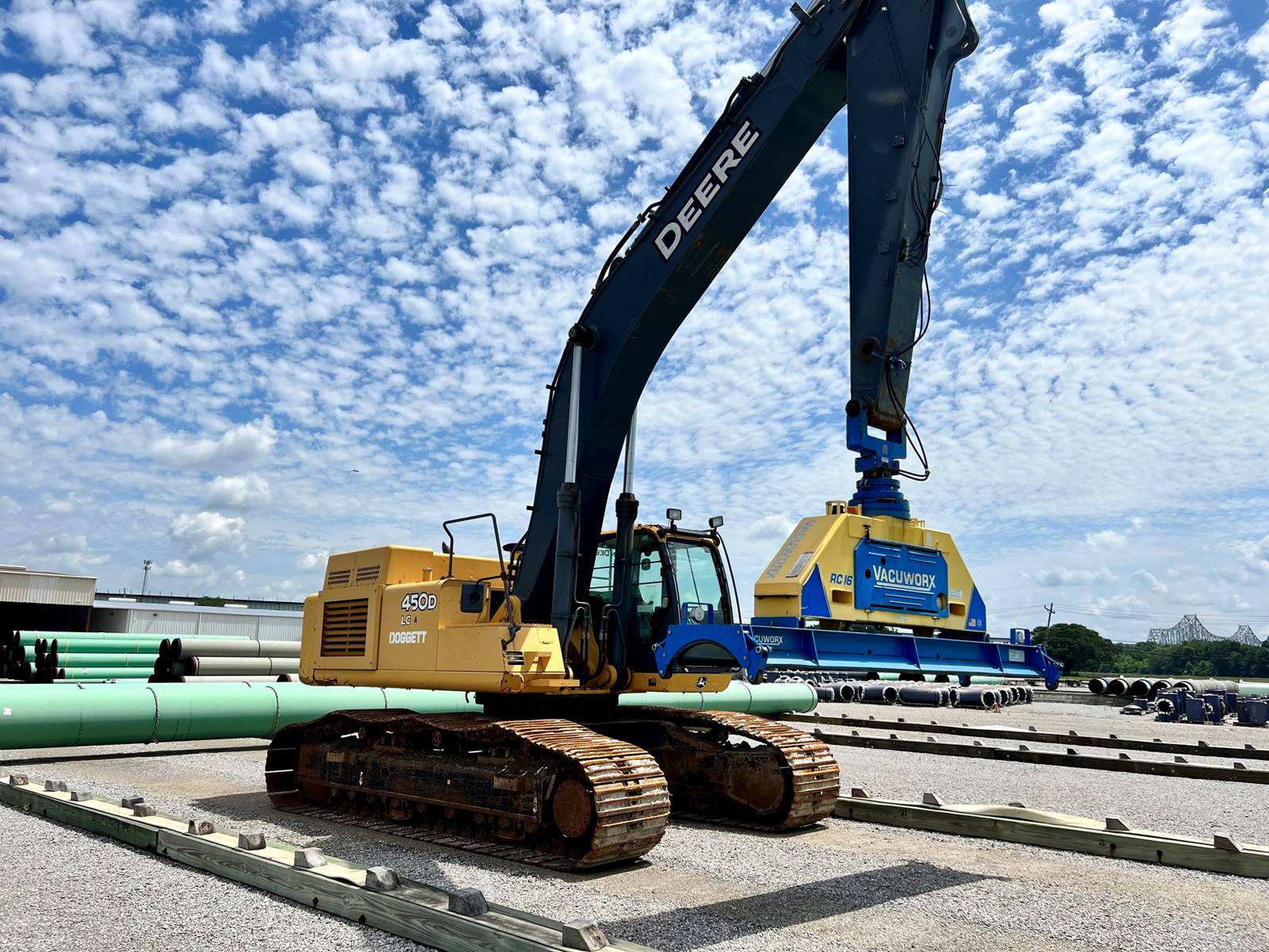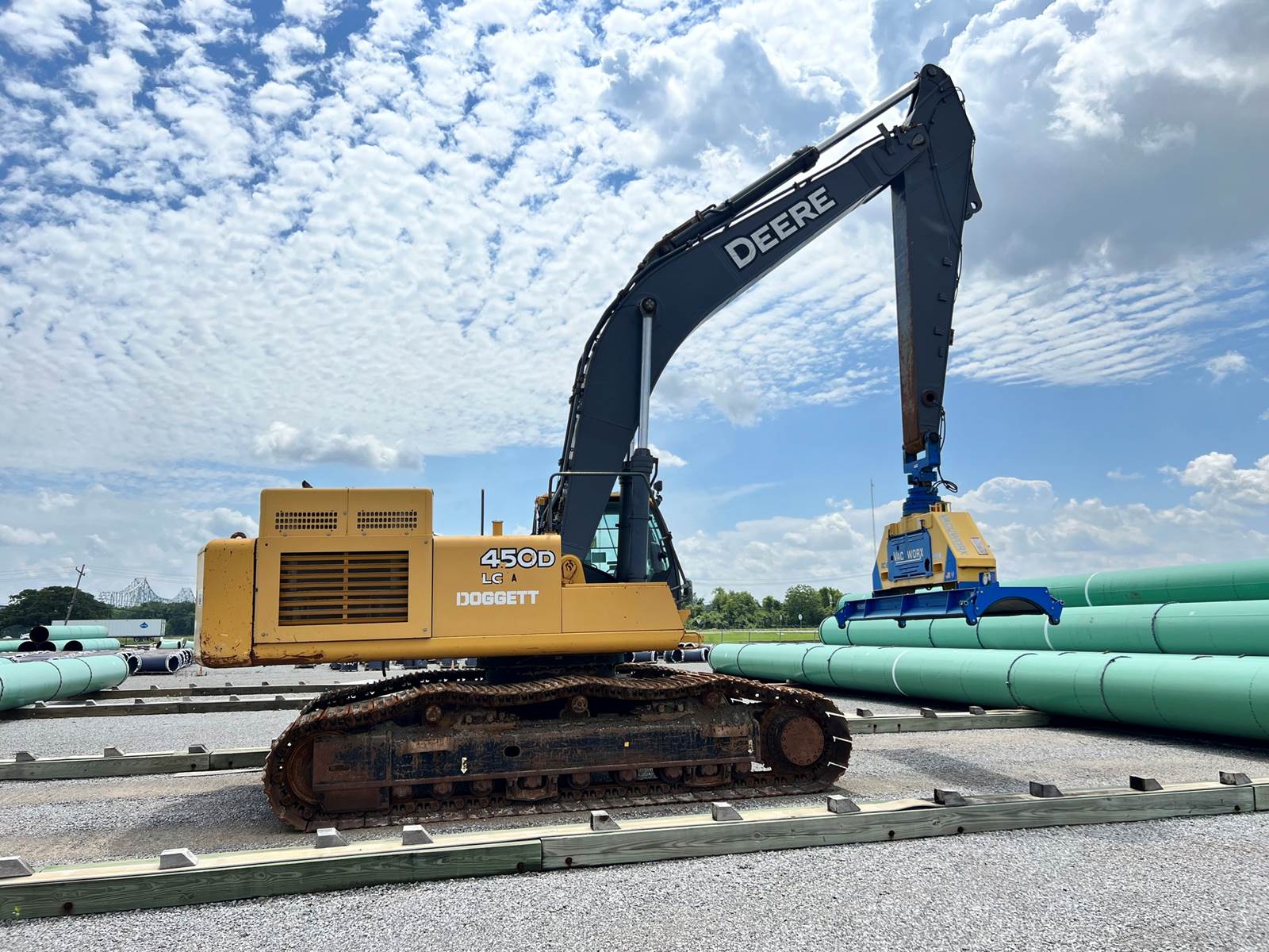 2011 Deere 450D LC Crawler Excavator, 9028 Hours, 348 Hp, 106k Lbs Operating Weight, Comes with 2.1 Yard Digging Bucket. Was set up for lifting pipe, Pipe Attachment not included, Undercarriage in Good Condition, Closed Cab, A/C and Heat, Fully Functional and Operates as it Should, Contact for More Information.