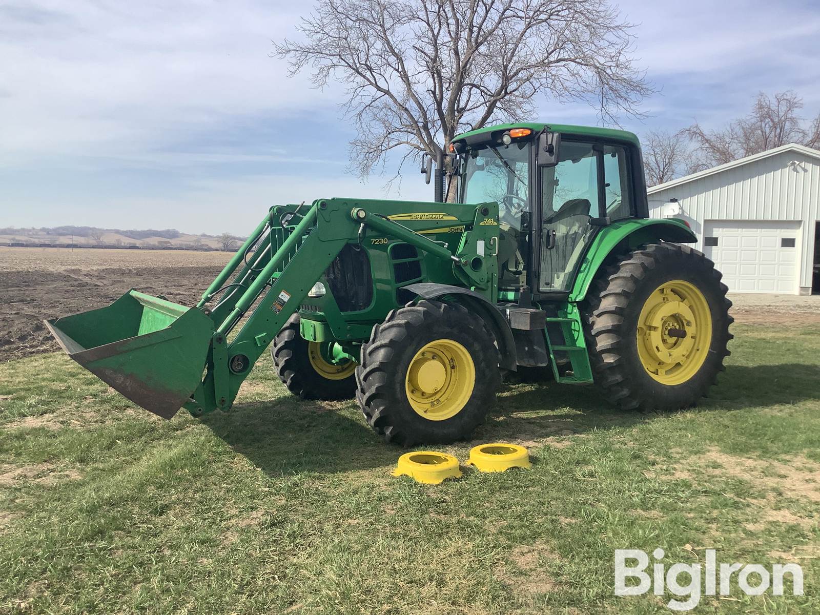 2011 John Deere 7230 MFWD Tractor w/ 741 Loader, 1,339 hrs showing, 135 hp, 6.8L 6-cyl, Block Heater, Power Quad Plus LHR 16/16, 540 PTO, Rear PTO, Rear Fender PTO Control, 3 Hydraulic Outlets, Rear Fender 3-Pt Hitch Control, 3-Point w/Quick Hitch, Differential Lock, 380/85R24 Front Tires, 480/80R38 Rear Tire Size, Front and Rear Fenders, 741 Quick Hitch w/ Joystick control, Quick Attach Bucket, Joystick Loader Control, 8’ Loader Bucket Width, 4 Rear Axle Weights, corner lighting, Extender hubs, deluxe exhaust, Super Comfort Seat, turntable front wheel fenders, reverser on column, Power Beyond unit included, seller states: battery replaced in Jan of 2026, SN: L07230H665161